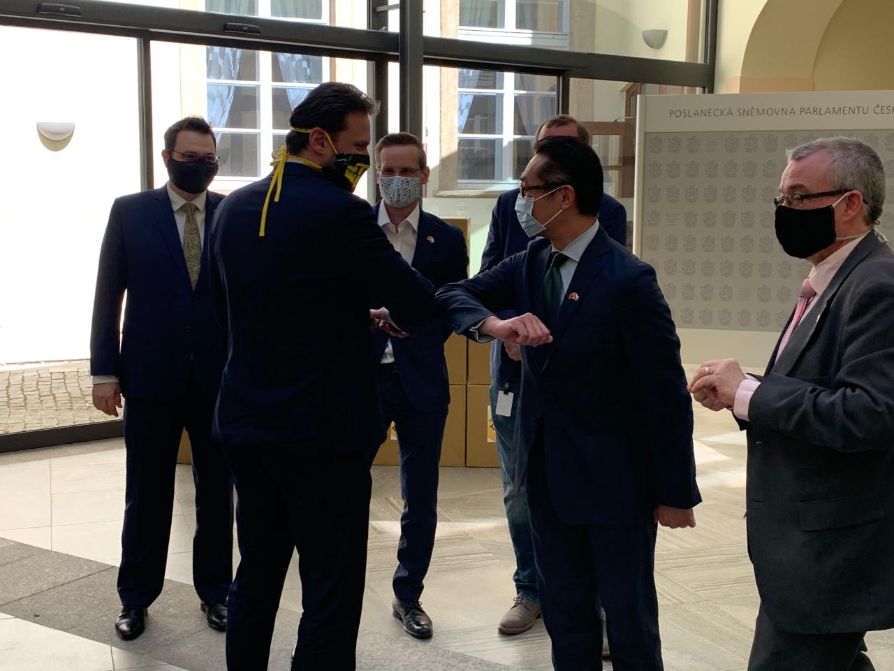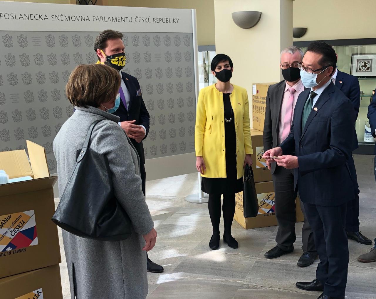 捷克眾議院馮德拉切克議長主持臺灣口罩捐贈儀式