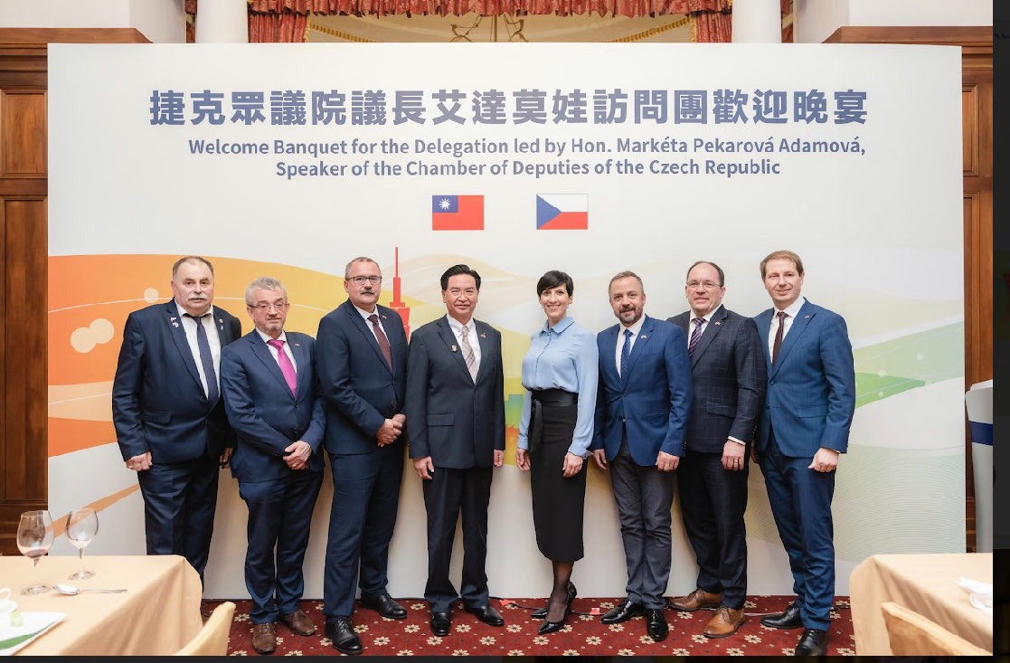 捷克眾議院議長艾達莫娃(Markéta Pekarová Adamová)率領訪團乙行抵台第三天,外交部長吳釗燮3月27日晚間在台北賓館款宴團長、跨黨派議員、科技研究及創新部次長、貿工部次長級總司長及外交部、網路安全局及內政部打擊恐怖主義與複合式威脅中心等高階行政官員,與國家博物館館長、歐洲價值中心執行長等主要團員,展現台捷雙方在國會、經貿、科技、安全、文化、智庫等各領域全面交流的決心,雙方並宣示理念相近國家團結合作,對抗威權主義擴張,共同援助烏克蘭。