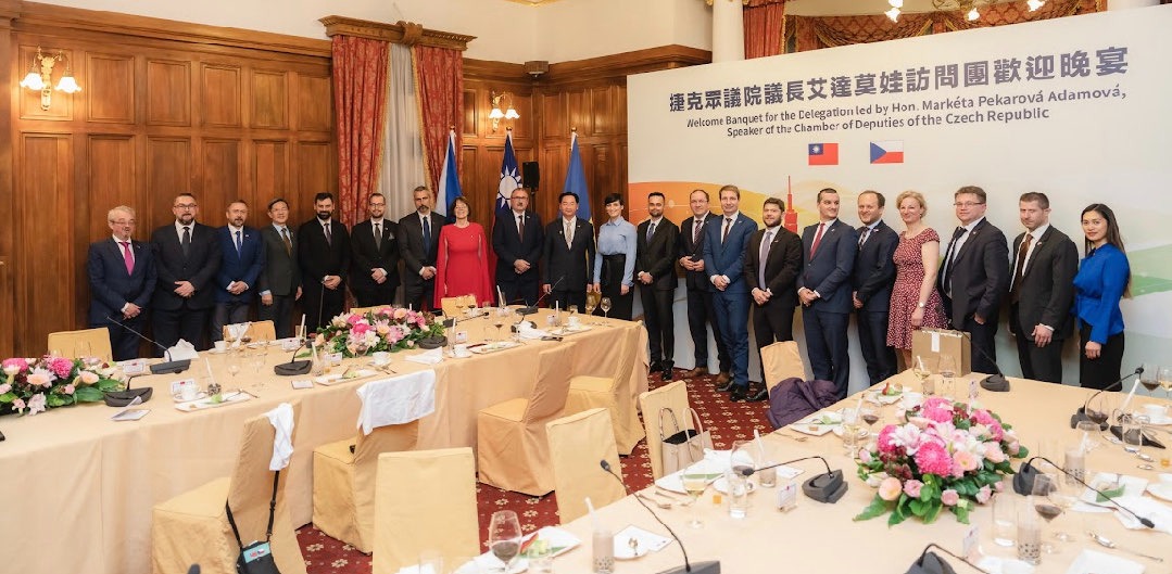 眾議長繼稱,台灣與捷克處境相當,都不斷遭受鄰近霸權國家假訊息與網路攻擊,尤其台灣是全球遭受假訊息攻擊最多的國家,盼雙方交流學習,強化兩國合作,共同對抗威權擴張。強調兩國不僅在科技、研發等各領域開展雙邊關係,更在共享理念價值基礎上持續深化友誼。(E) 外交部長吳釗燮於台北賓館晚宴捷克眾議院議長艾達莫娃(Markéta Pekarová Adamová)訪團。