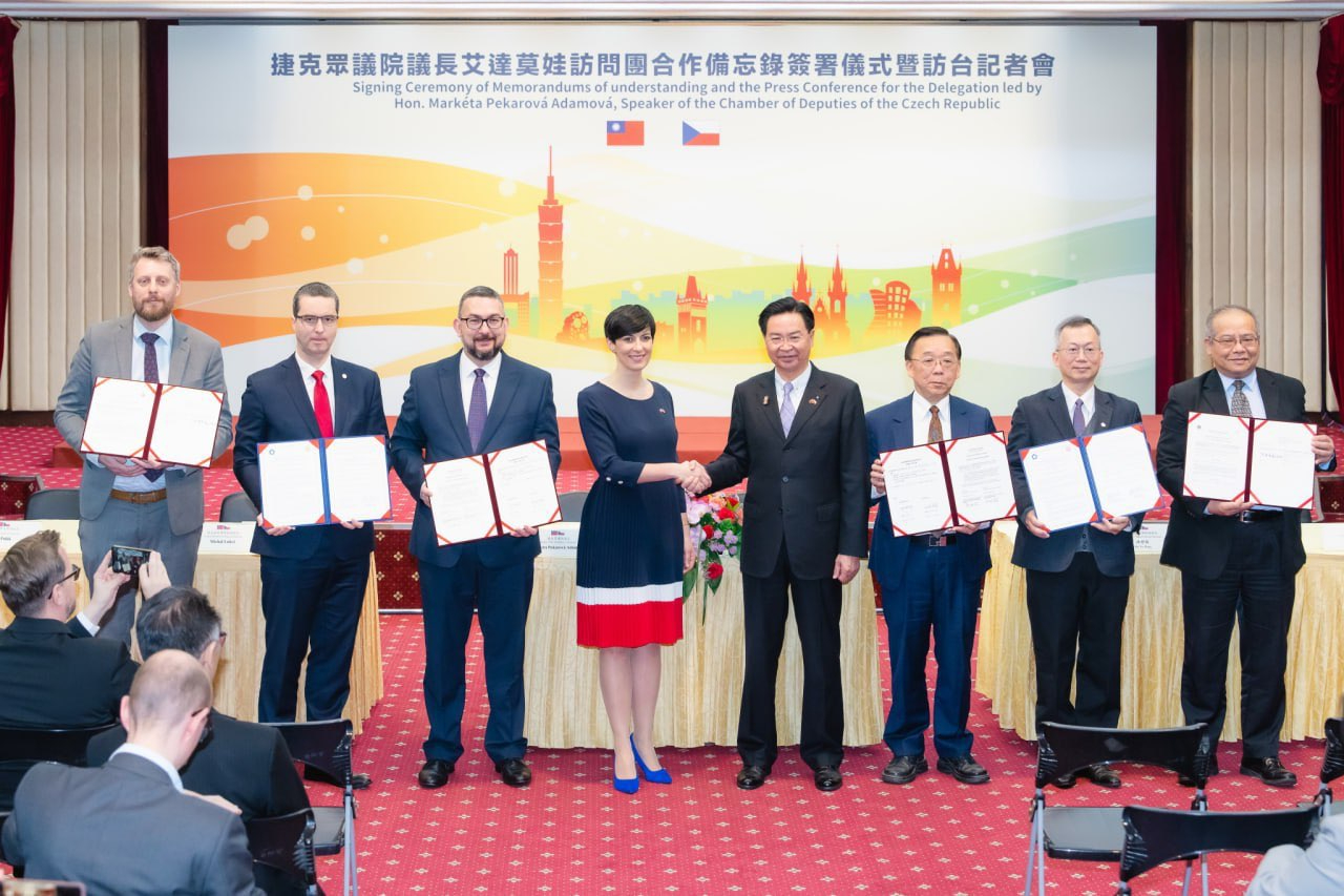 外交部長吳釗燮及捷克眾議院議長艾達莫娃(Markéta Pekarová Adamová)於本(3)月29日在外交部共同見證台灣與捷克簽署3項合作備忘錄,艾達莫娃眾議長並與立法院長游錫堃簽署兩國國會友好聲明;國家發展委員會主任委員龔明鑫於會中宣布「中東歐投資基金」投資審議委員會通過捷克虛擬實境開發商VRgineers投資案,預計投資金額最高可達500萬美元,預計在今年第2季完成投資。另外,訪團隨行的企業及學界代表與我國對口夥伴共簽署7項合作備忘錄,成果多元且豐碩。