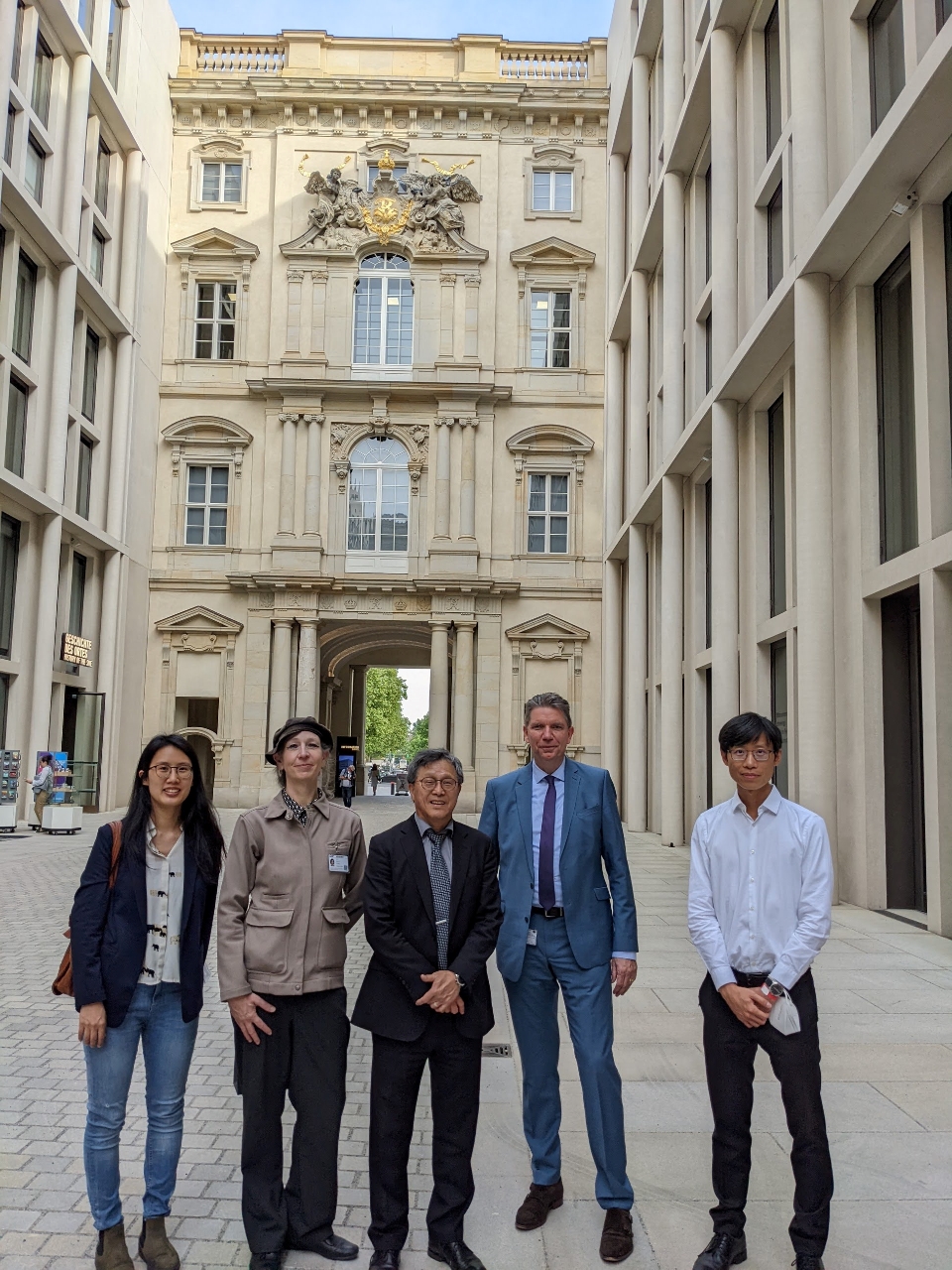 5月19日謝志偉大使參觀甫於2021年開幕之洪堡論壇博物館(Humboldt Forum),謝大使在參訪時表示,希望能夠看到亞洲文物在博物館如何以歐洲、德國的觀點展示,並且強調臺灣並不只在中華文化的脈絡裡,也受太平洋南島文化影響,要能以多面向的角度觀看臺灣。謝大使對於洪堡論壇博物館的規模以及對展示的規劃、論述相當欽佩,表示盼能再有機會深度參觀。