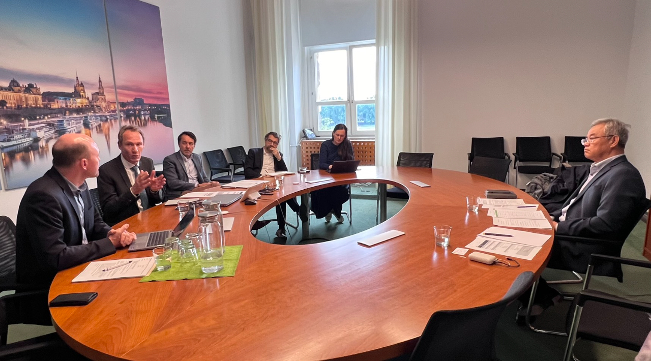 黃青雲參事偕邱奕喬秘書拜會薩克森邦總理府,與國際事務處處長Dr. David Michel及薩克森邦經濟部(SMWA)數位策略處處長Dr. Sebastian Lindner等官員就台積電供應鏈赴德投資相關議題召開首次工作小組會議及會後餐敘。