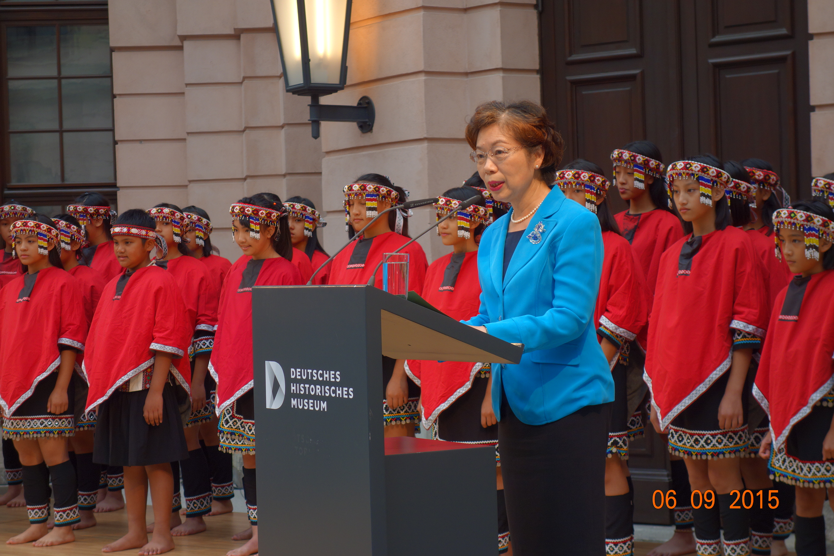 駐德國代表處於9月6日上午11時30分假柏林德國歷史博物館舉辦致贈中德協約精印複製本儀式及酒會,共有德國政界、媒體、原聲合唱團及接待原聲合唱團之德國寄宿家庭家長等近150人參加。 陳大使華玉致詞時,除娓娓說明1921年之中德協約對德國及中華民國兩國關係所具有之歷史意義之外,另指出人類歷史的演進高潮迭起,世界的局勢瞬息萬變,各國的版圖分分合合。第二次世界大戰結束後,中華民國政府於1949年播遷到台灣,戰後德意志聯邦共和國與在台灣的中華民國始終未再恢復邦交,不過多年來雙邊仍不斷維持實質的緊密交往關係。如今我們審視這份1921年的中德協約,緬懷歷史,相信台德雙邊的友人都會跟我們一樣有非常深刻的感觸。這份合約的正本保存在台北的故宮博物院,中華民國外交部特別製作一份精製的複印本贈送給德國歷史博物館,以供德國人民及來自世界各國的人士瀏覽。據最近媒體報導,柏林的觀光客人數已躍居世界第一,超過倫敦、巴黎。柏林最吸引人之處應該是它的歷史,我們希望這份中德協約複印本可增補德國與亞洲歷史的一個片段。 史博館館長Prof. Dr. Koch於致詞時表示,第一次世界大戰後德國處境艱難,積極爭取奧援,中德協約之簽訂對確有助改善德國之國際地位,該館感謝我國致贈該項約複印本,勢必妥善加以保存及運用。 捐贈儀式在賓主先後致詞後進行,由陳大使代表中華民國外交部致贈,由Prof. Dr. Koch代表館方受贈。為增添儀式之場莊嚴隆重氣氛,駐德國代表處有幸邀得「原聲合唱團」助陣,先後獻唱「奇異恩典」、「茉莉花」及「獵祭」3首歌,其嘹亮優美之聲音迴盪在史博館中庭間,不僅贏得與會賓客之激賞,亦吸引參觀博物館之民眾紛紛駐足聆賞這場聽覺盛宴。
