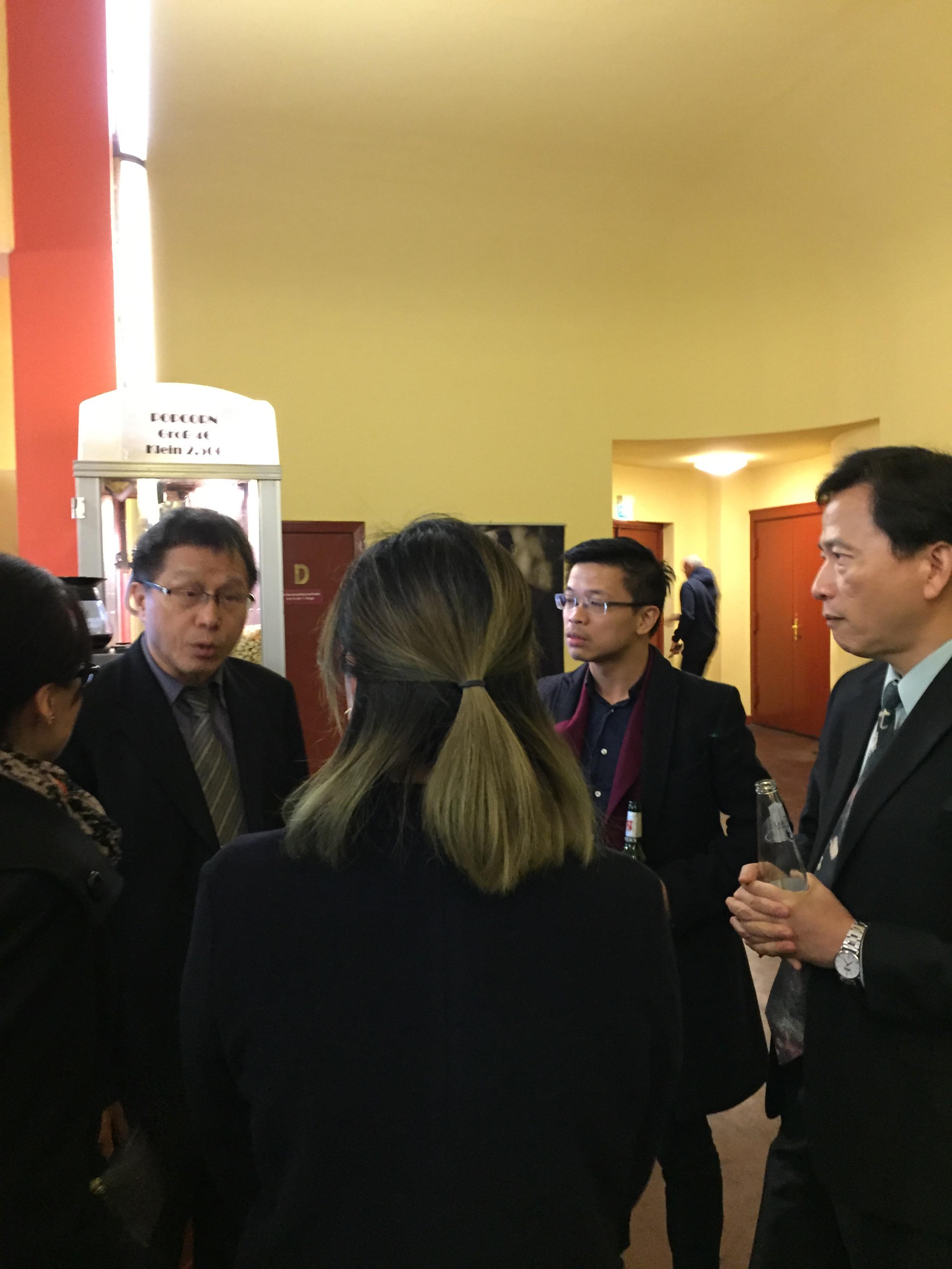 柏林「臺灣電影週」4月4日(星期二)於巴比倫藝術電影院隆重登場,首映影片亦是蘇哲賢導演「進擊之路」,謝大使亦偕夫人與代表處同仁共同出席支持國片。謝大使致詞時感謝現場近8成出席率觀眾熱情的參與,並表示透過電影是跨越國界且最真實的方式瞭解臺灣文化,預祝大家盡情欣賞,有一個美好的夜晚。影片放映後,蘇導演至臺前透過翻譯人員暢談創作過程並回答觀眾各式各樣的提問,包括臺灣與中國的關係、電影在中國、香港與臺灣放映有何差異、臺灣觀眾如何看待此紀錄片等。討論1個多鐘頭,一直到晚間10時20分結束,現場氣氛相當熱絡。