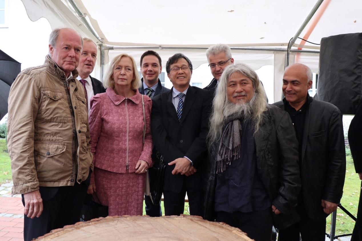 (由左自右) 德國國會議員Axel Knoerig、謝大使、康大師、Diepholz文化促進協會Schmitz會長、副市長Schwarz共同揭幕。