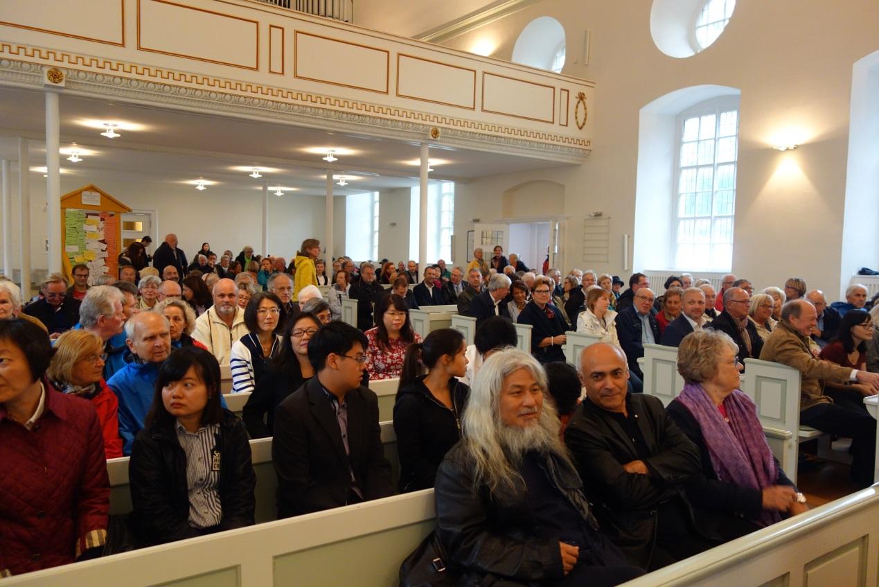 該揭幕典禮於9月8日下午4時於D市最著名之聖尼古拉教堂(St.-Nicolai-Kirche)舉行,德國聯邦教育及研究部(Bundesministerin für Bildung und Forschung) 部長Johanna Wanka、德國國會議員Axel Knoerig、D市副市長Hans-Werner Schwarz、D市教會首長(Superintendant)Klaus Priesmeyer等多位當地政要及杜塞道夫楊僑務諮詢委員櫻鳳、陳僑務委員黎黎等僑領應邀出席該盛會,附近市鎮居民扶老攜幼前來共襄盛舉,會場座無虛席。