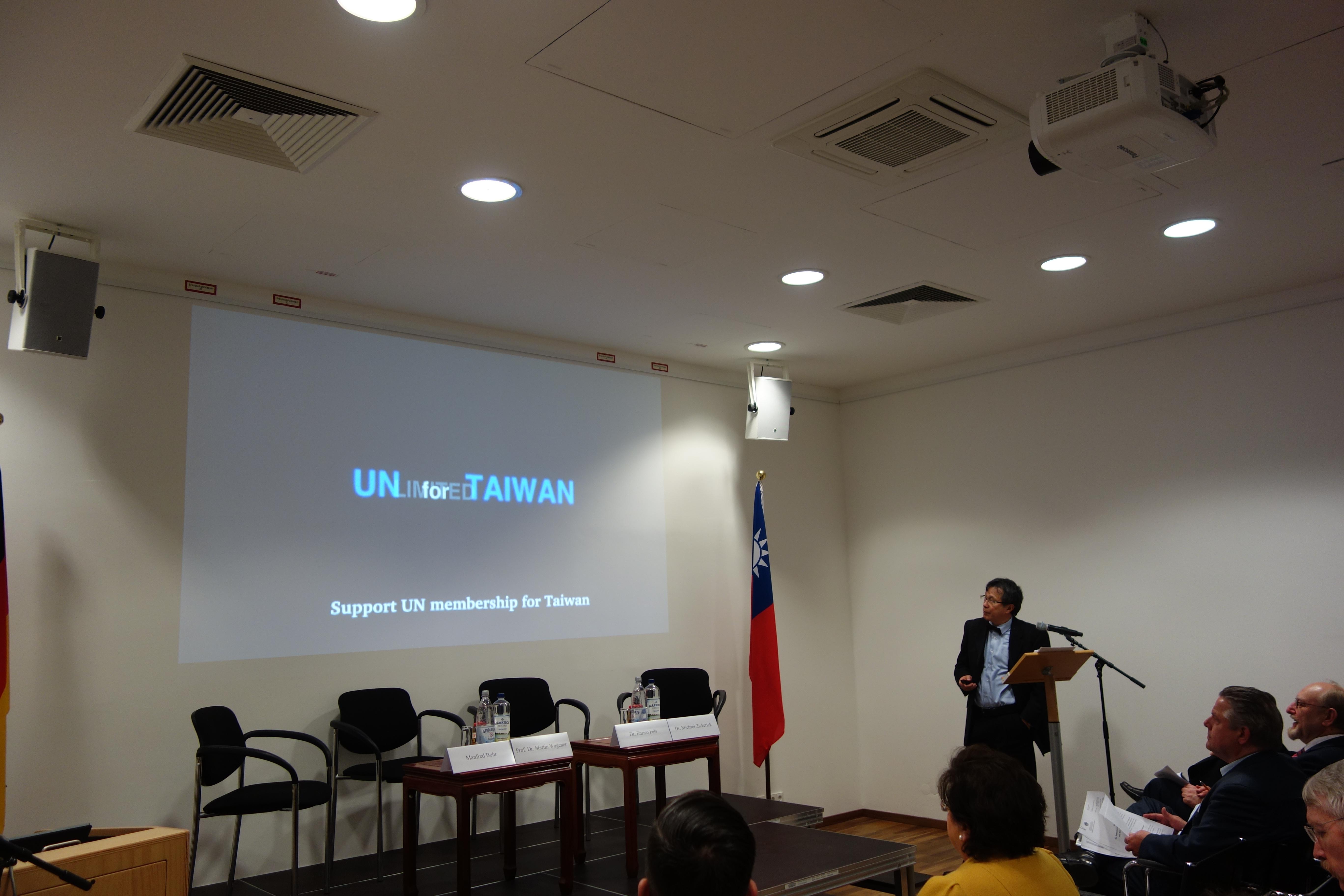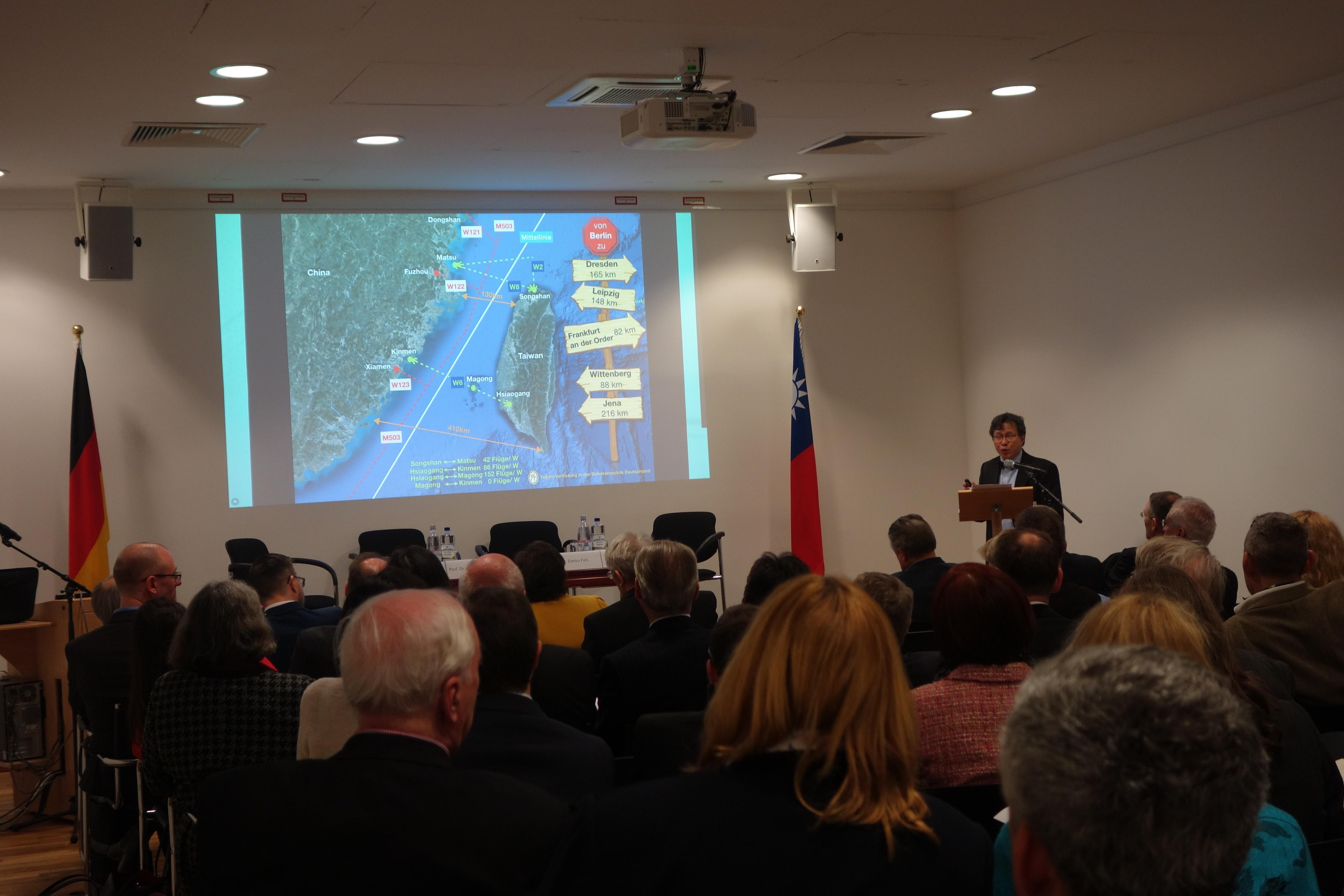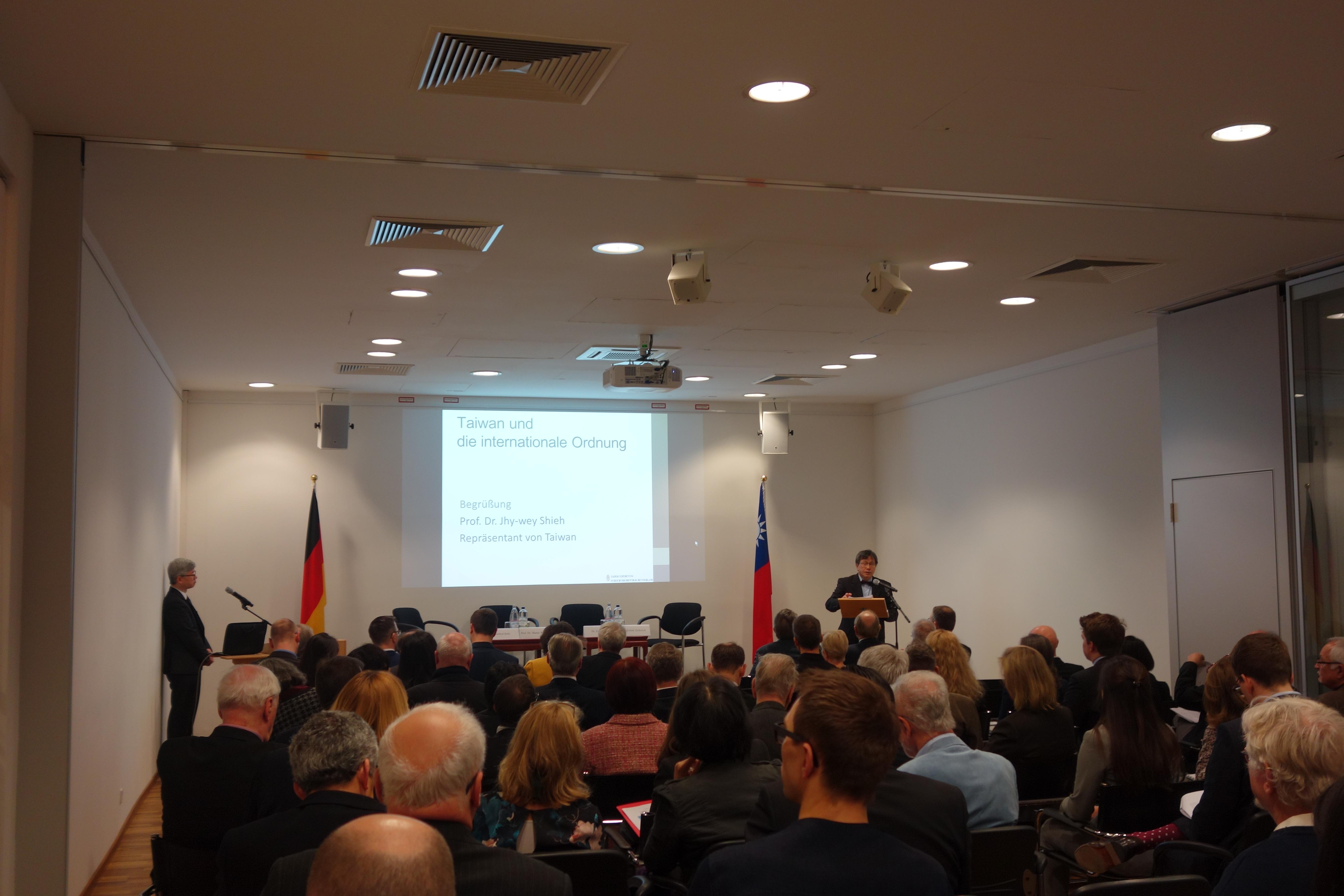 駐德國代表處與德國聯邦公務學院國際政治研究教授Prof. Martin Wagener共同於本(107)年2月22日(週四)在該處台灣文化廳舉辦「臺灣與國際秩序」(“Taiwan und die internationale Ordnung”-Taiwan Tagung)研討會,邀請德國專精兩岸問題、「中國」、臺灣及國際關係領域之專家學者分別擔任與談人、評論員與專題討論主持人,會議為期1日,計有德國政府官員、國會議員、德國政黨人士、智庫、學界、媒體等各界人士近百人與會。