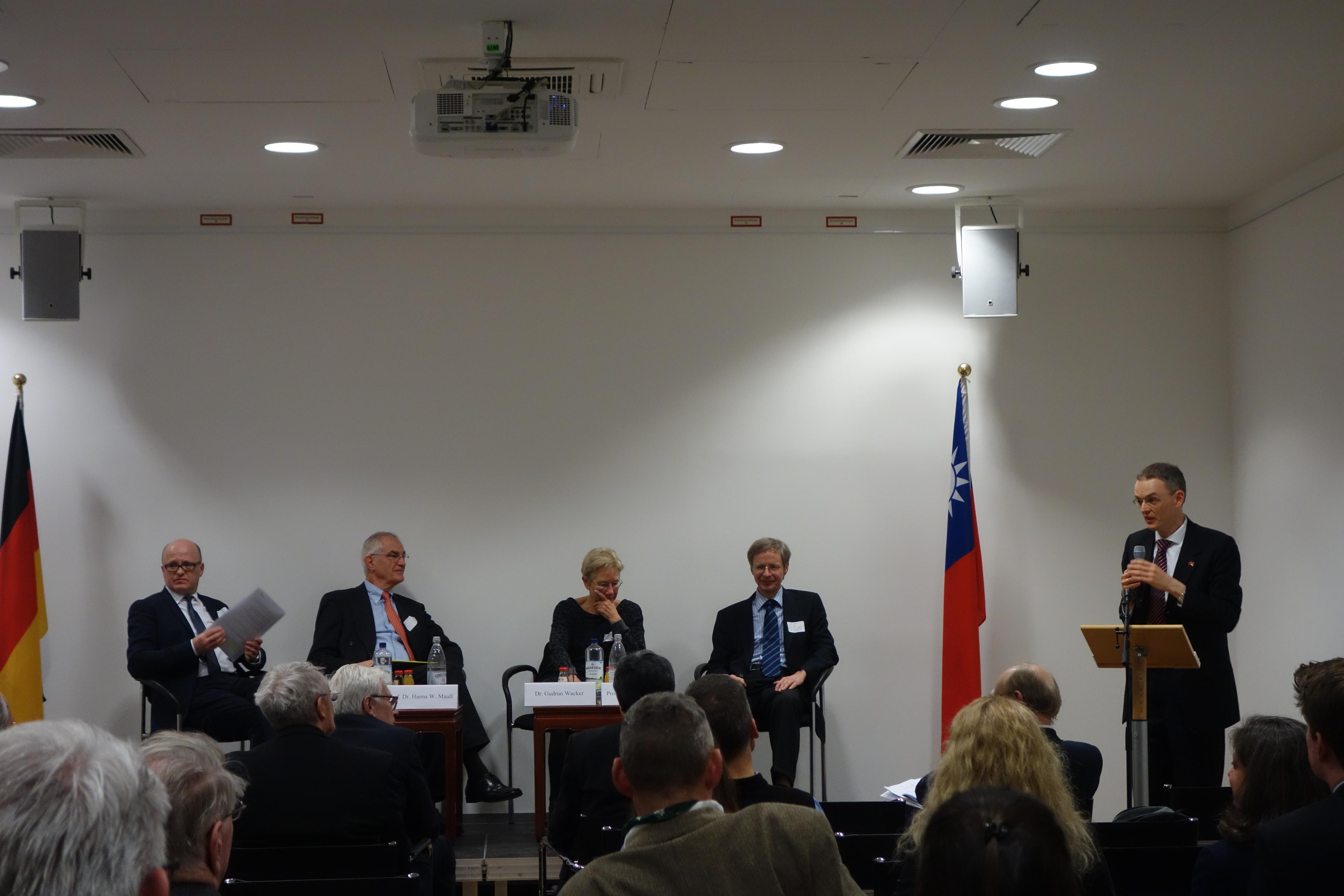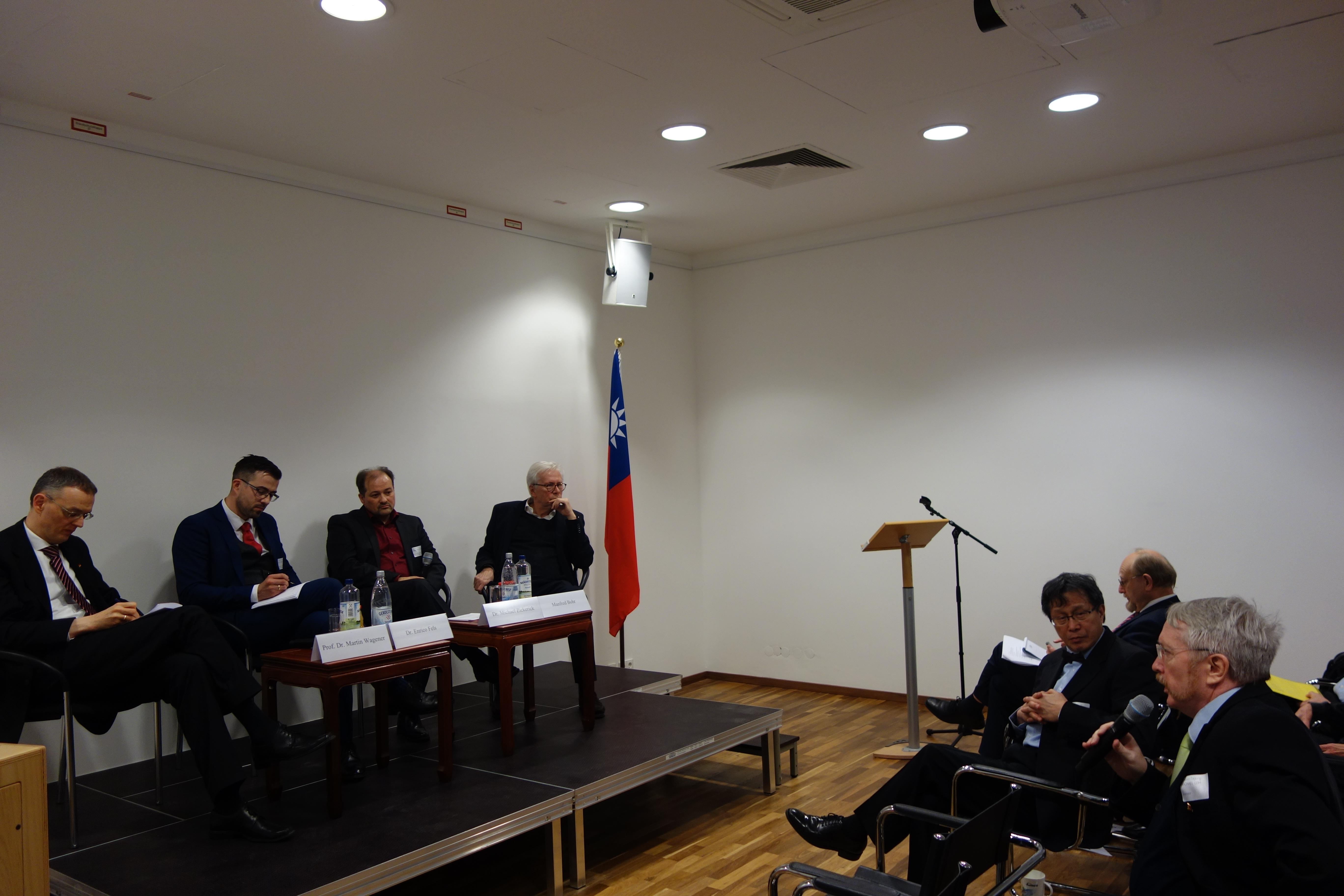專題討論分別就「台灣之國防安危處境」(Die sicherheitspolitische Lage Taiwans)、「台灣經濟」(Die ökonomische Lage Taiwans)及「台灣與國際秩序之未來」(Taiwan und die Zukunft der internationalen Ordnung)為主題進行討論,三場次均由德國學界與智庫人士擔任主持人、與談人及評論員。本研討會最後由謝大使作結。