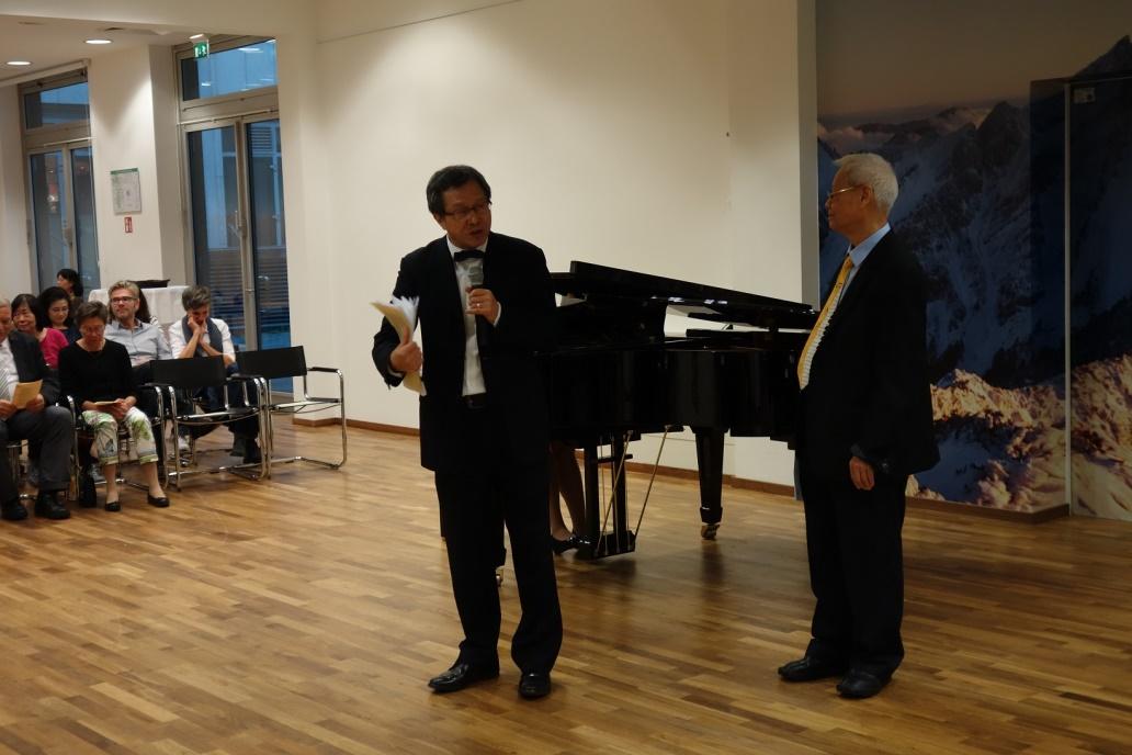 臺灣駐德國謝大使志偉首先以主人身份歡迎各位嘉賓熱情參與,並感謝來自臺灣的音樂家蒞臨演出,讓「臺灣文化廳」蓬蓽生輝,同時表示,文化常能搭起兩國間的橋梁,音樂更是能跨越隔閡,感動人心,看到這麼多優秀臺灣音樂家在臺灣這麼艱困的國際處境下,努力展現文化軟實力,所有前線外交人員再如何辛苦也都值得,亦與有榮焉。