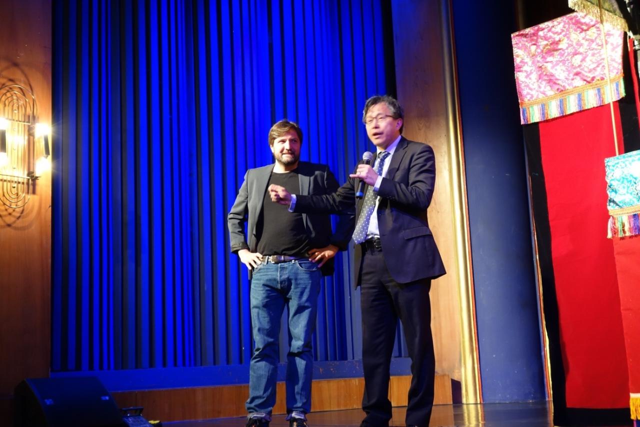 首先,柏林國際文化中心執行總監海因德(Fridolin Hinde)介紹來自臺灣的「陳錫煌傳統掌中劇團」並請謝大使致詞,謝大使盛讚陳錫煌師傅掌上功夫了得,也許觀眾僅知道所謂的東方「功夫」外,今天可以細細品味掌上乾坤的精妙。尤其,當介紹到高齡88歲的陳錫煌師傅遠渡重洋,為的是將這布袋戲傳統技藝讓更多人欣賞,現場馬上報以熱烈掌聲。