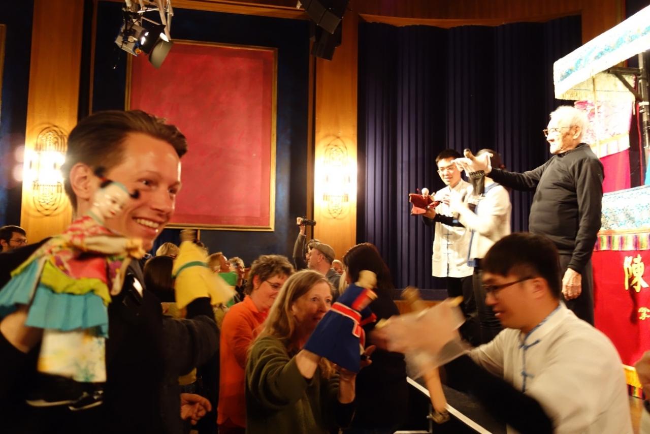 全劇演出結束後,操偶師將布袋戲偶帶至臺前與觀眾互動,並提供戲偶供觀眾練習操作,熱情的觀眾一擁而上,對於饒富東方風味且精緻木偶愛不釋手,陳錫煌師傅亦十分有耐心地以分解動作示範劇中主角包括開扇、梳頭、空中騰躍等高難度經典動作,神乎其技的演出讓觀眾讚嘆不已。原本僅預計25分鐘的示範,最後觀眾欲罷不能,時間超過1小時,人潮一直至晚間10時才逐漸散去。陳師傅從表演到示範,站立了近2個鐘頭,期間不時提醒他會不會累,要不要坐一下。他老人家僅是面帶微笑淡淡地說:不會累,已經站習慣了。