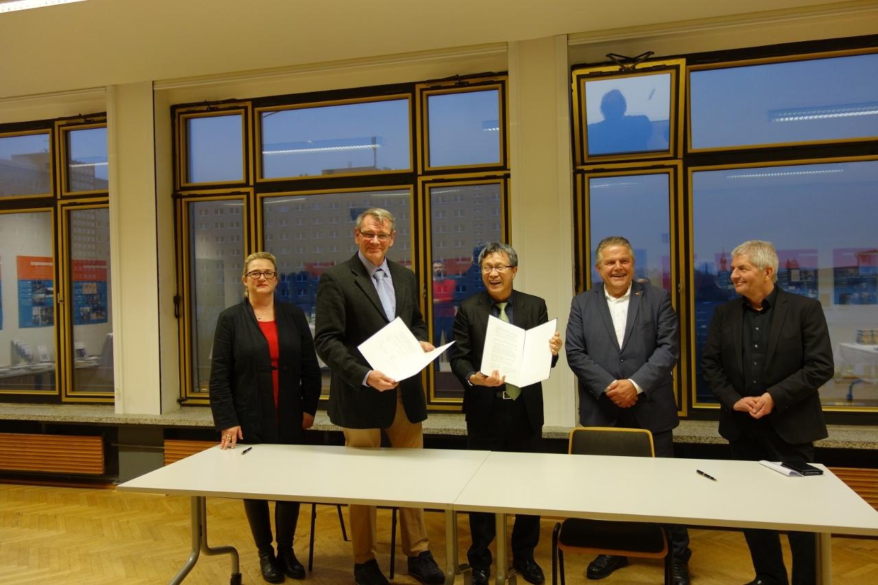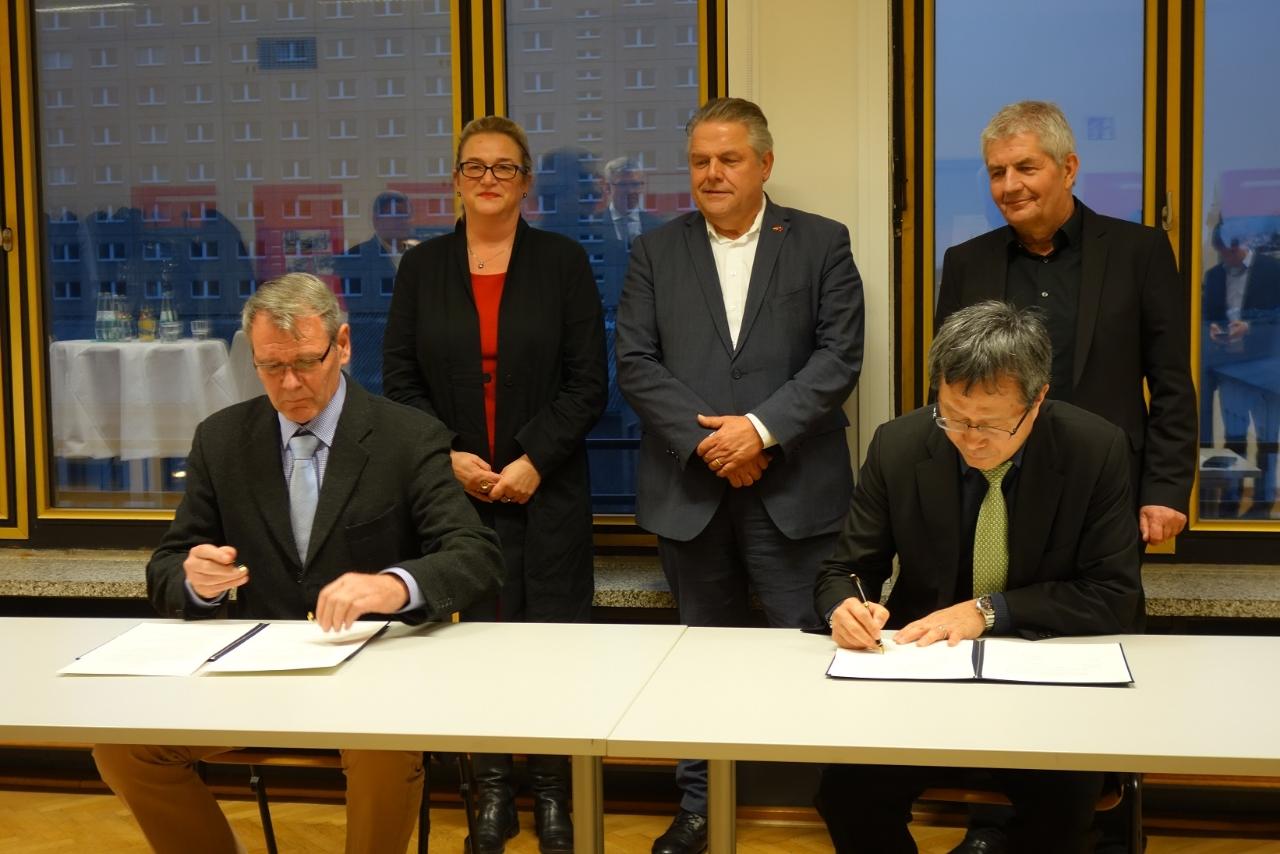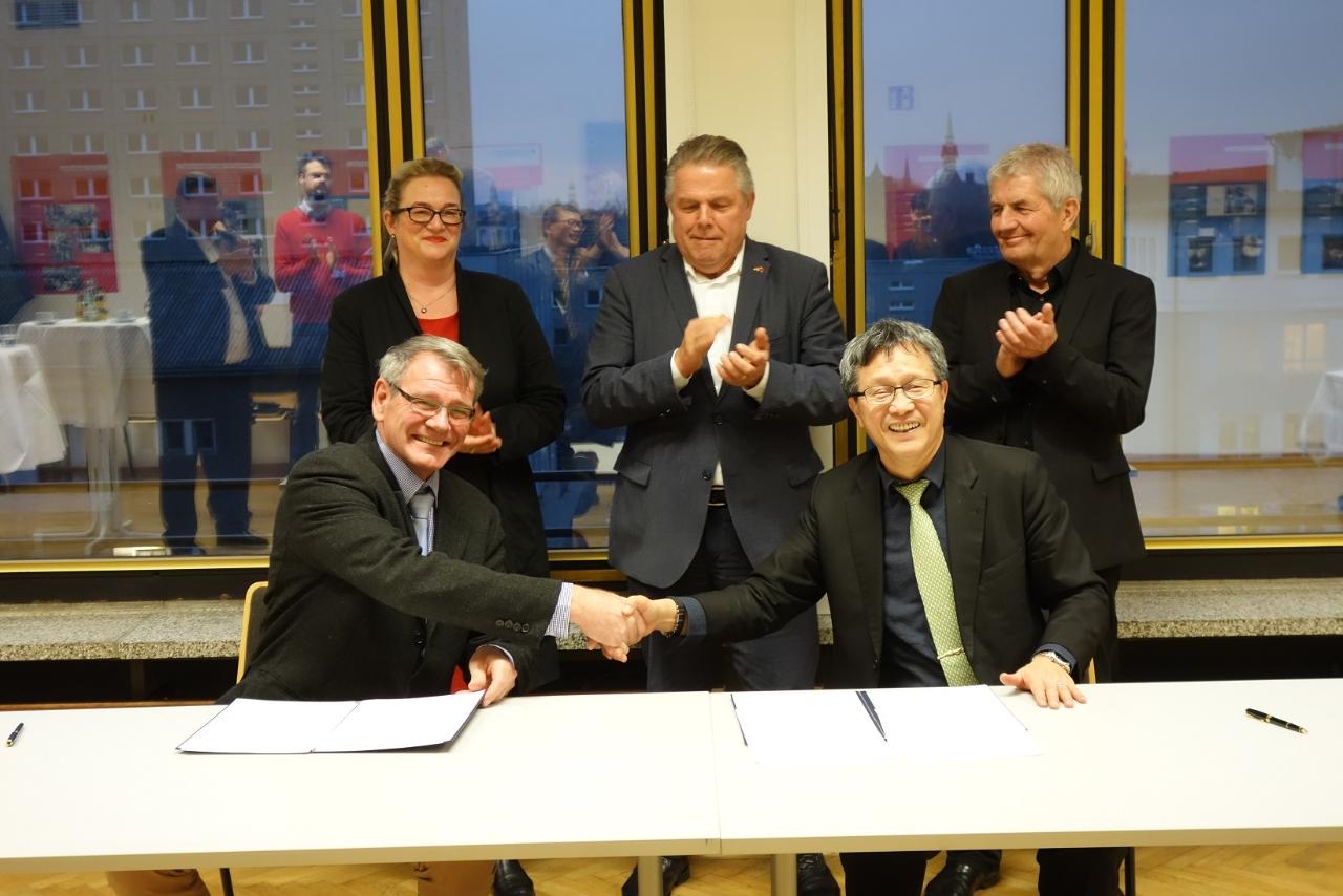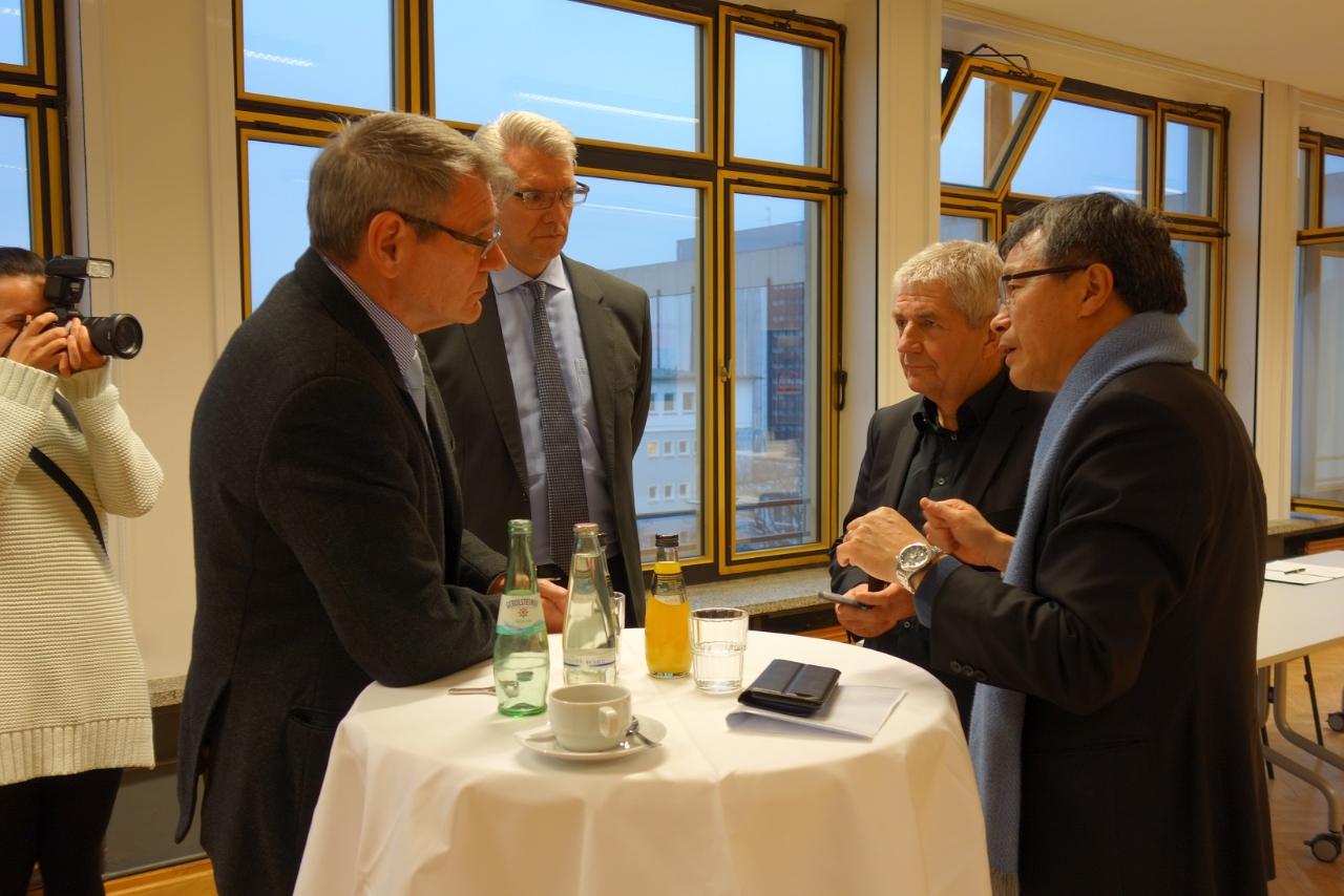 楊恩局長首先感謝現場嘉賓的蒞臨並指出,自從2016年台灣文化部長鄭麗君訪德首站拜會史塔西檔案局起即開啟與台灣在轉型正義議題交流之門。迄今,與臺灣處理轉型正義機構均保持密切交流。這份合作意向書是基於台德雙方對民主、自由的共同價值下所簽署,令人深感欣慰。隨後謝大使致詞表示,並非所有地方(例如中國、香港、新疆維吾爾族)都能像台灣一樣享有民主自由,對於現場嘉賓及德國一直以來對台灣民主的支持由衷感謝。今年正是台灣美麗島事件40周年,當時受審的許多政治犯例如當今總統府秘書長陳菊女士也都受到德國友人的救援與協助。若沒有這一路的支持與扶持,將不會有台灣今天的民主,也不會有「轉型正義」的可能。在德國在台協會處長王子陶博士、德國國會文化與媒體事務委員會主席布蒂及德國國會友台小組魏爾胥主席一一獲邀致詞表達支持台灣民主,並對兩國就民主人權議題得能更進一步合作表示欣慰。致詞結束雙方隨即由王處長及謝大使代表簽署意向書。