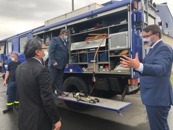 圖片 3 THW及W議員向謝大使解說救難隊平日專用之多功能大卡車。