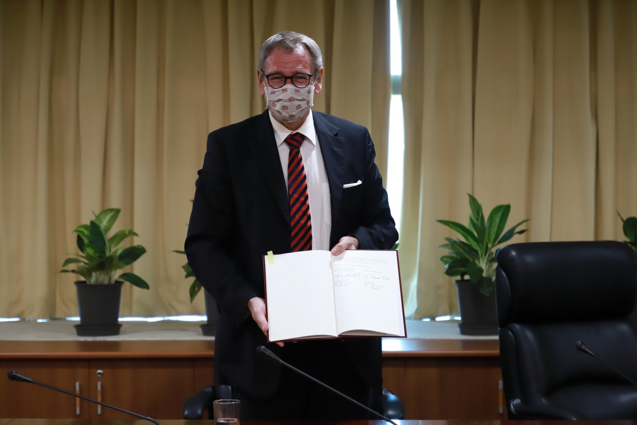 駐德國代表處謝代表志偉與德國在臺協會王處長子陶(Thomas Prinz)業於本(110)年7月15日以視訊方式完成異地簽署「臺德航空服務協議」,我交通部王部長國材主持及見證簽約儀式,德國聯邦交通暨數位基礎建設部政務次長Steffen Bilger亦以預錄影片方式致賀。