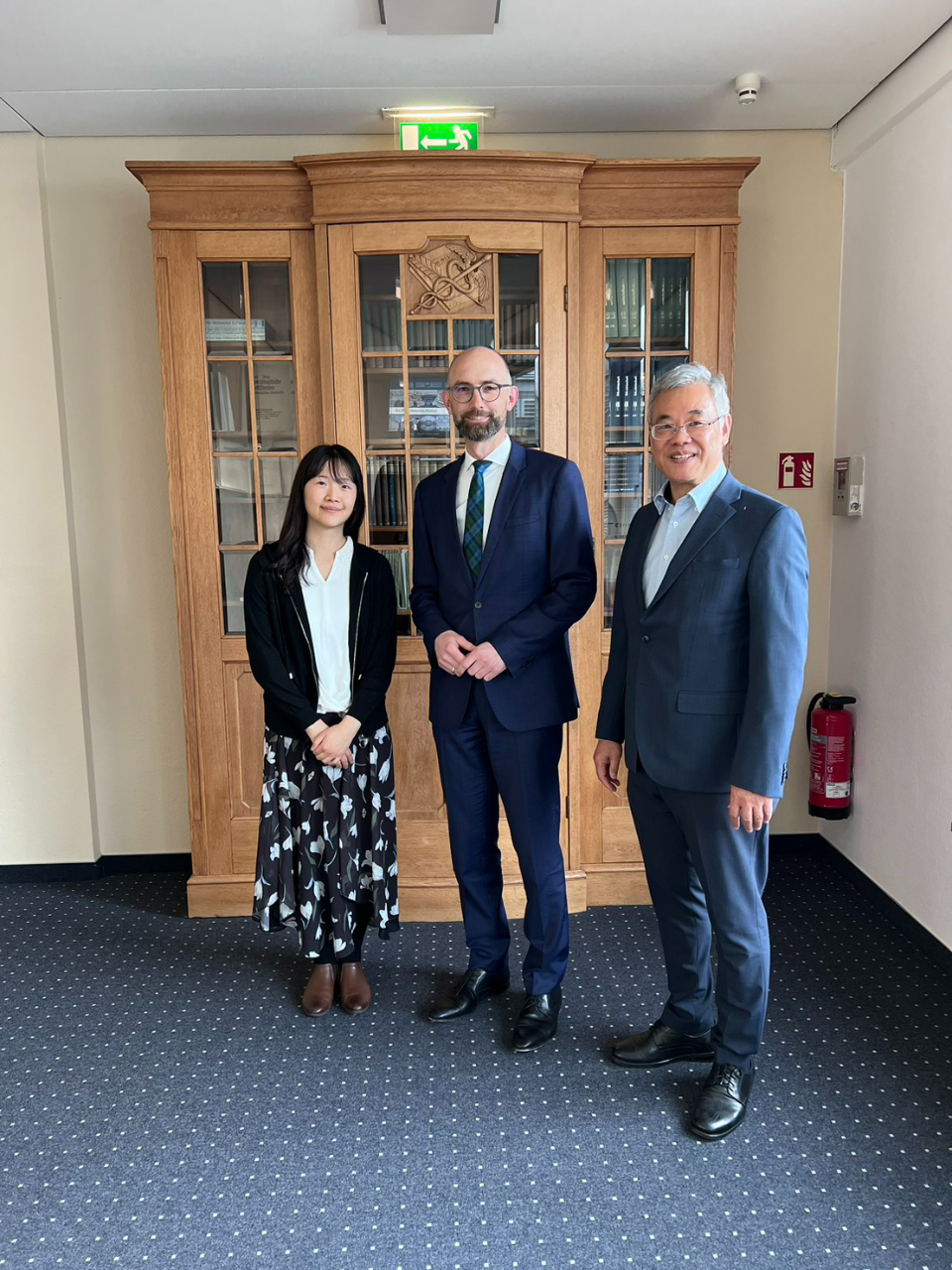 Botschaftsrat Ching-Yun Huang von der Wirtschaftsabteilung der Taipeh Vertretung in der Bundesrepublik Deutschland besuchte gemeinsam mit Cheng-Hsun Yang die Industrie- und Handelskammer (IHK) Cottbus in Deutschland. Begleitet wurden sie von Herrn Thomas König, Leiter der Ostasien-Abteilung des Deutschen Industrie- und Handelskammertages (DIHK). Empfangen wurden sie von Frau Silke Schwabe, Leiterin des Geschäftsbereichs Außenwirtschaft und Unternehmensentwicklung der IHK Cottbus. Beide Seiten erzielten einen Konsens über Themen wie Energiewende, den Einsatz von Künstlicher Intelligenz im Gesundheitswesen sowie den Aufbau einer Plattform für wirtschaftlichen Austausch und Zusammenarbeit.