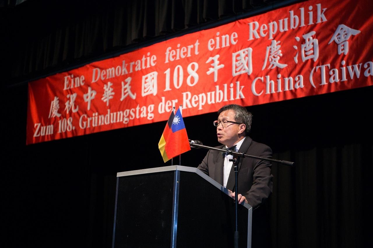 In seiner Rede bedankte sich der Botschafter zuerst bei der Bundestagsabgeordneten und Vorsitzenden der Deutsch-Chinesischen Gesellschaft e.V. - Freunde Taiwans, Anita Schäfer, den Mitgliedern des Parlamentarischen Freundeskreises Berlin-Taipei sowie bei allen Freunden Taiwans für ihre fortgesetzte Unterstützung. Aufgrund der Bemühungen, sowohl auf taiwanischer als auch auf deutscher Seite, waren in den letzten Jahren einige taiwanische Minister zu Besuch in Deutschland und wurden von ihren Amtskollegen herzlich empfangen.