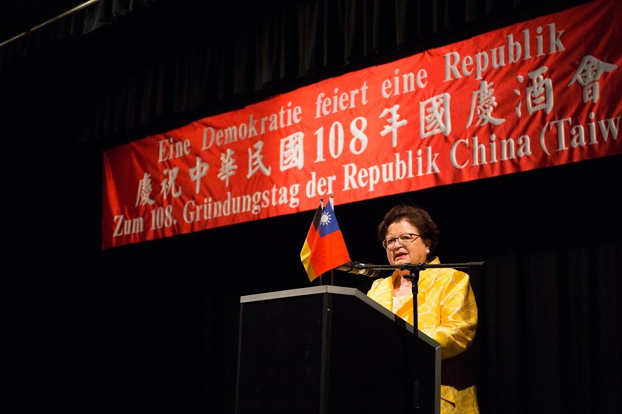Frau Anita Schäfer MdB unterstrich in ihrer Begrüßungsrede, dass Taiwan in stürmischen Zeiten als fester demokratischer Staat wie ein Fels in der Brandung steht. Obwohl die Bundesrepublik Deutschland und die Republik China keine diplomatischen Beziehungen unterhalten, sind die Bindungen zwischen Deutschen und Taiwanern auf wirtschaftlicher, technologischer und zivilgesellschaftlicher Ebene eng. Zum Abschluss lobte sie Taiwan, das nach Beendigung des Ausnahmezustandes im Jahr 1987 eine starke und freiheitliche Demokratie geworden ist. Heute feiern wir die Freundschaft zwischen Taiwanern und Deutschen!