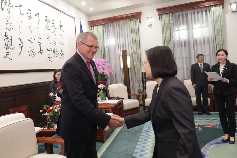 President Tsai Ing-wen met with German Institute Taipei Director General Thomas Prinz on the morning of February 25. She thanked Germany for recognizing the Taiwanese people's right to health and demonstrating support for Taiwan by speaking on behalf of the 27 member states of the European Union (EU) at the Executive Board session of the World Health Organization (WHO) earlier this month, saying that when global epidemics strike, no region should be excluded from the information-sharing process. She also expressed hope that as a key EU economy, Germany will support our bid to sign an investment protection agreement with the EU, thus creating a win-win for all parties.
