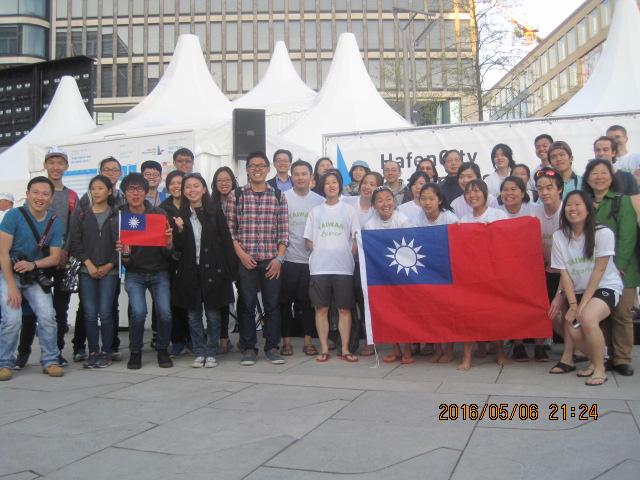 朱處長夫婦與龍舟隊隊員及留學生啦啦隊合影