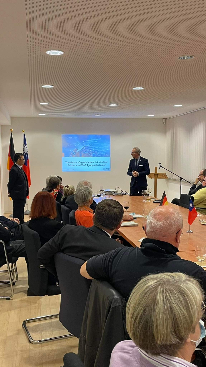 Arndt Sinn教授於辦事處發表演說,支持台灣參與國際刑警組織