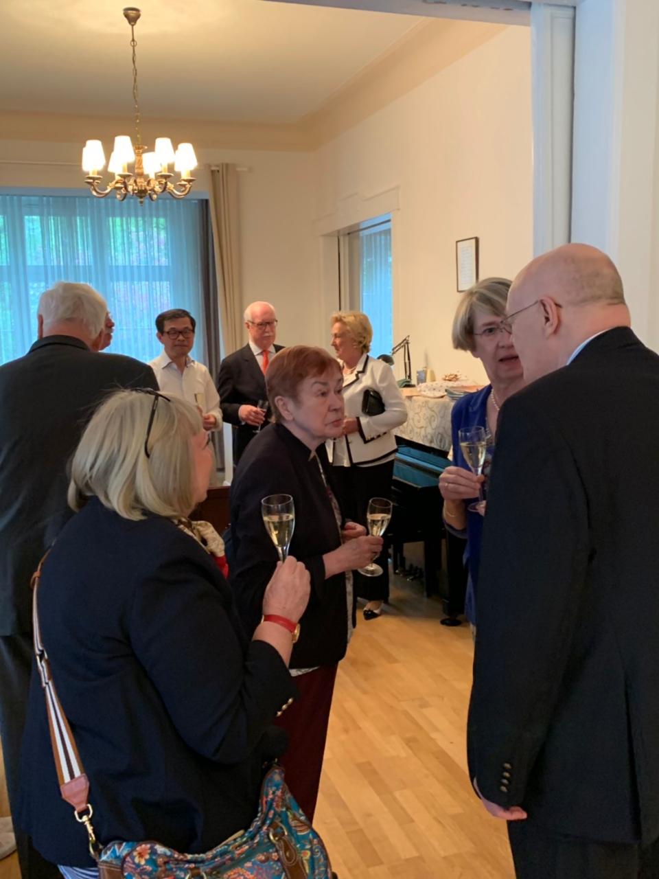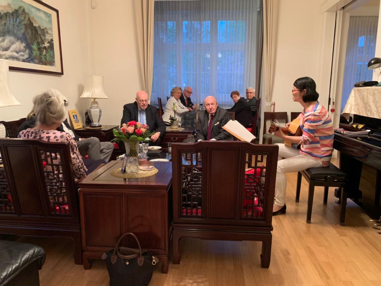 駐漢堡辦事處羅美舜處長夫婦於108年4月26日晚間邀請竹友會主席Dr Boesken 夫婦及理事20餘人, 於職務宿舍舉辦一場小型音樂會, 現場除備有本處員眷精心準備的美味佳餚外, 更由羅處長眷屬及Dr. Boesken分別表演吉他與鋼琴演奏及合唱中外文歌曲, 現場氣氛熱絡, 賓主盡歡.