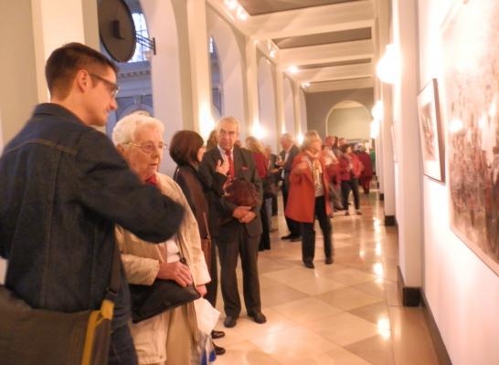 觀眾駐足觀賞中庭迴廊84幀高水準作品