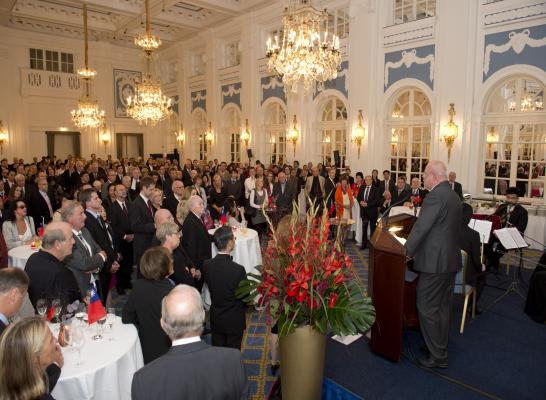 駐漢堡辦事處於本(10)月7日晚間假漢堡Atlantic飯店舉辦中華民國102年國慶酒會,參加賓客包含轄區政治、經濟、學術、文化、媒體、僑界代表,如漢堡邦議會Barbara Duden副議長、國會議員Jürgen Klimke及漢堡地區領事團代表、漢堡中華會館、婦女會、台商會等僑界及陽明、長榮海運等企業代表約400人,我留德漢堡音樂學院學生現場演奏中西樂曲,場面熱烈,氣氛歡愉。張處長並與與會嘉賓祝中華民國國運昌隆。