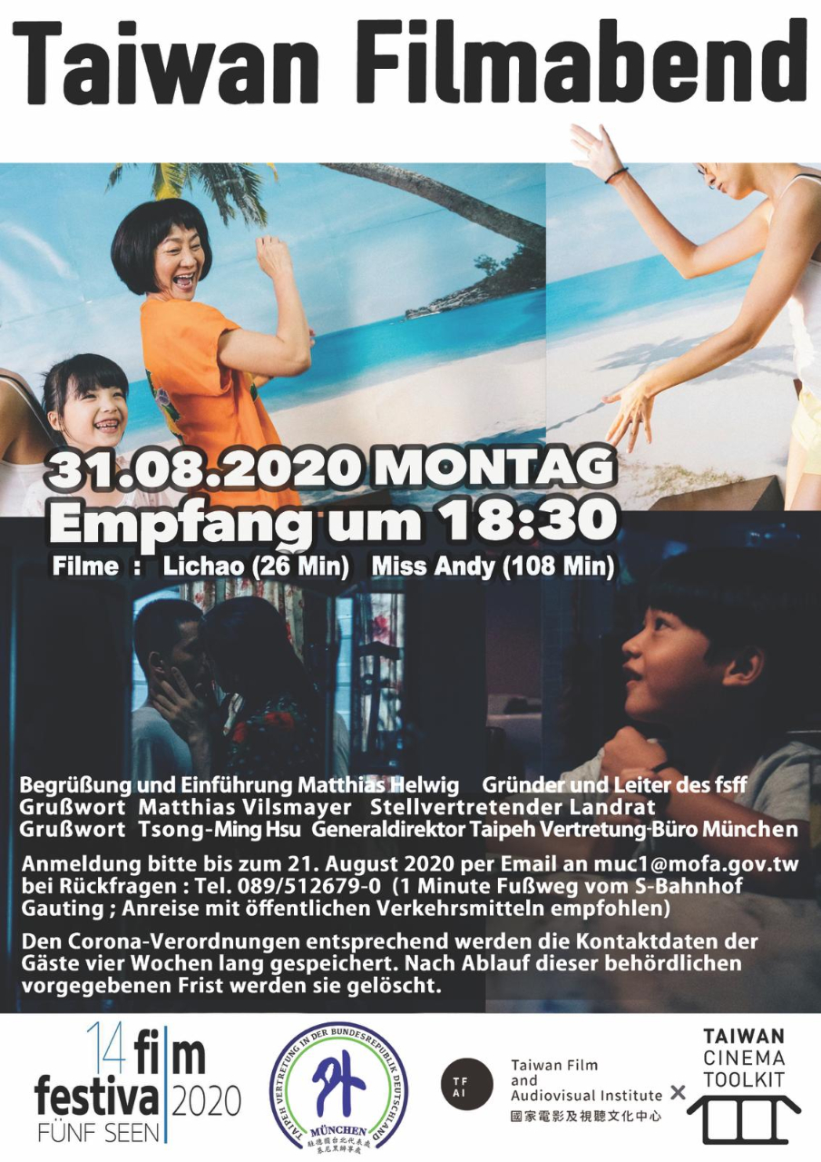 台灣連續第9年獲邀成為影展正式夥伴國! 本年將播放「離巢」(Lichao)、「迷失安迪」(Miss Andy),歡迎大家來看好片! 詳情請見五湖電影展官方網站: http://www.fsff.de/home/cm/fff-current-sektion-top-n/139/index.html