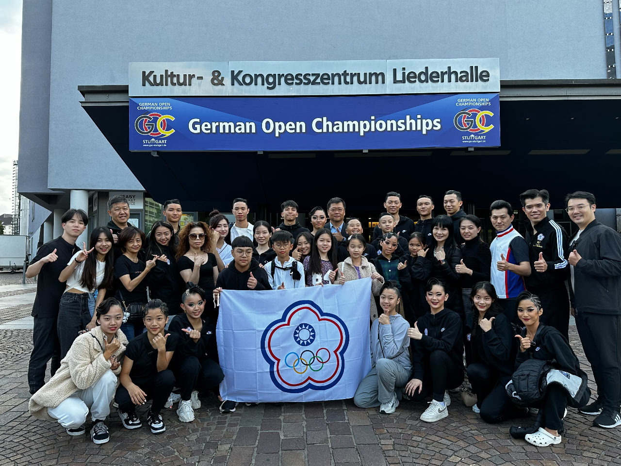 中華台北代表隊參加WDSF於本(2023)年8月8日至12日在德國斯圖加特(Stuttgart)所舉辦國際運動舞蹈大賽德國公開賽(German Open Championships)中共獲得2面金牌、2面銀牌、1面銅牌、7個第四名、3個第五名,2個第六名,創下歷年來得牌最佳紀錄。 得獎名次如下(依據比賽時間排列): 青少年一級單人標準舞女子組銀牌洪采芯及第六名吳嘉萱 青少年一級單人標準舞男子組第四陳聖煒及第五名陳皓瑄 青年單人拉丁舞女子組第四名郭品熏 青年單人拉丁舞男子組第四名周承蔚及第五名陳世璿 青少年二級單人標準舞女子組金牌王儀珊及第四名吳紫璇 青年單人標準舞女子組金牌王儀珊第四吳紫璇及第五名康歆妮 青年單人標準舞男子組銀牌陳帛均、銅牌陳世璿及第四名周承蔚 青少年二級單人標準舞男子組第四名李民勵及第六名陳皓瑄。