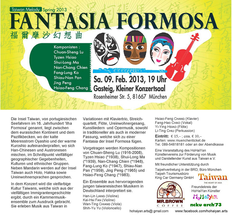 Sa. 09.02.2013, 19.00 in Gasteig, Kleiner Konzertsaal: „Taiwan Melody“ -- Spring 2013, FANTASIA FORMOSA!