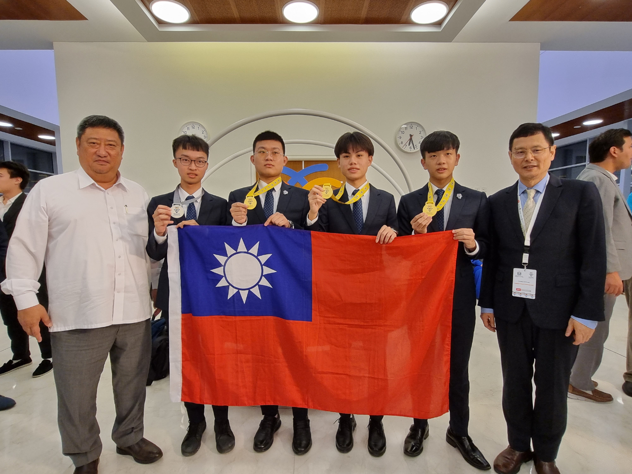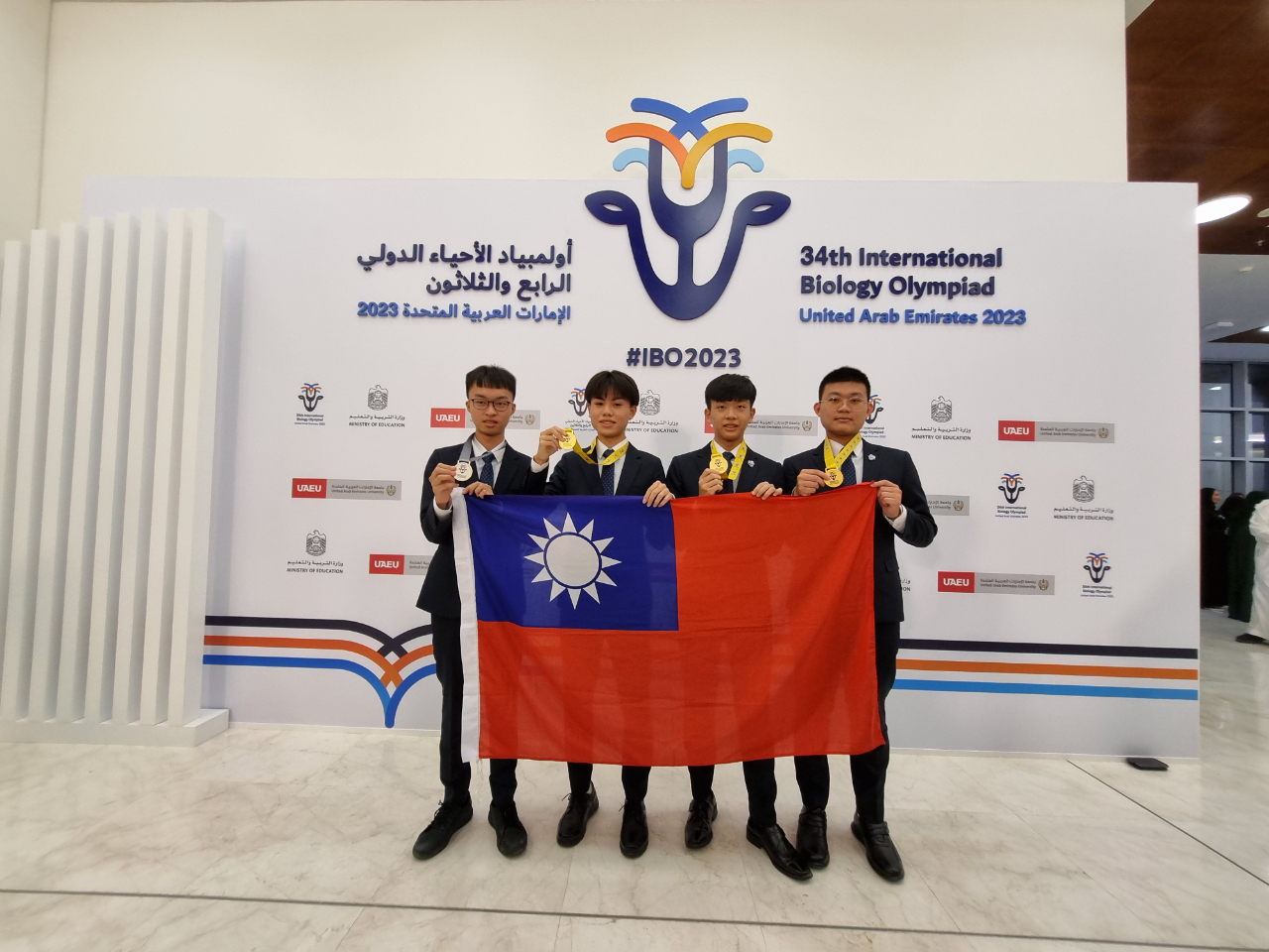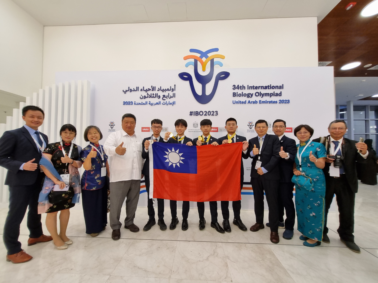 我國參加「2023年第34屆國際生物奧林匹亞競賽」代表團,經過一週賽程,成績於7月10日揭曉,我國共有4位選手參賽,臺北市立建國高級中學王柏翔同學、臺中市立臺中第一高級中學郭宸彰同學及國立臺南第一高級中學林軒名同學共榮獲3面金牌,臺北市立建國高級中學李彥緯同學榮獲1面銀牌。我國駐杜拜臺北商務辦事處組長張婉君提供代表團行政協助,並於7月3日出席開幕式為我國選手加油打氣;該處處長張治平於7月10日出席閉幕式時,即代表外交部表達祝賀之意,同時期勉選手學無止境、百尺竿頭更進一步,期未來能再為我國爭光,會後與我國教授及參賽選手合影。