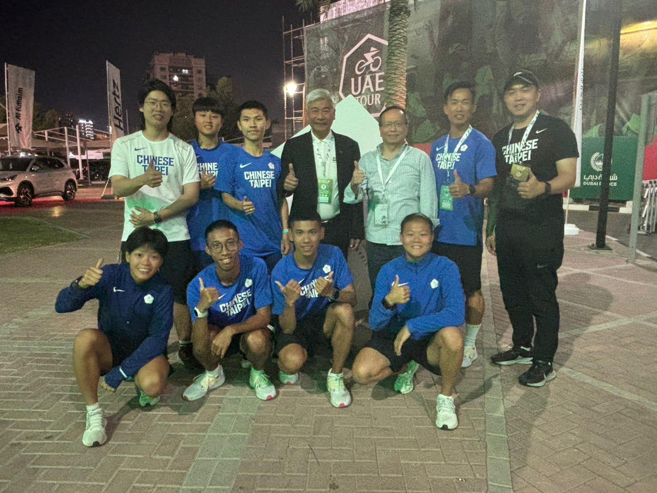 中華青年田徑代表隊(U20)由中華台北體育運動總會王秘書長景成及中華台北田徑協會國際組賴組長英儒率領6位大專、高中學生於4月22日抵達杜拜,參加在杜拜舉辦之「亞洲青年田徑賽(U20)」。駐杜拜辦事處李組長樹東代表本處於26日下午前往會場為我國選手加油打氣!