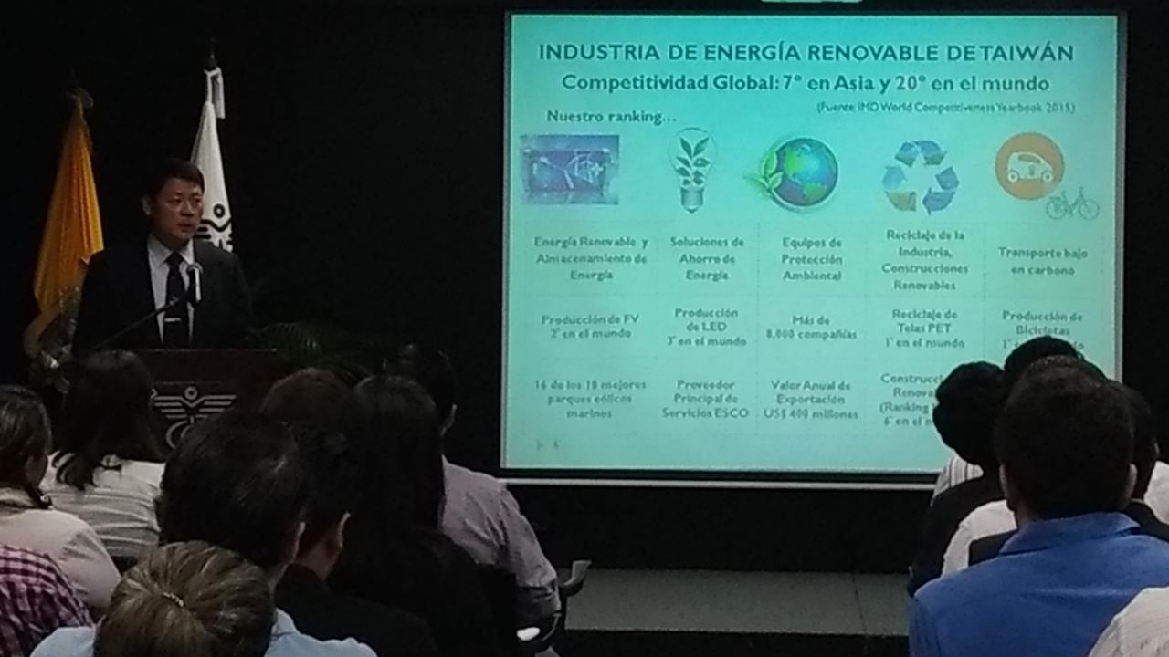 Foto: El Representante Gubernamental Sr. Lino Cheng de la Oficina Comercial de Taipei explicó el desarrollo de"Economía Circular" que forma parte del "Programa de Innovación Industrial 5+2", la política económica clave dirigida por el gobierno.