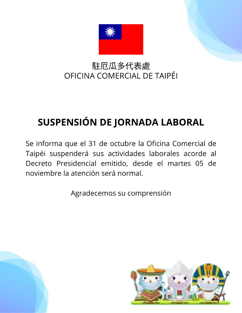 Suspensión de Jornada Laboral - Oficina Comercial de Taipei 臺北駐厄瓜多商務處