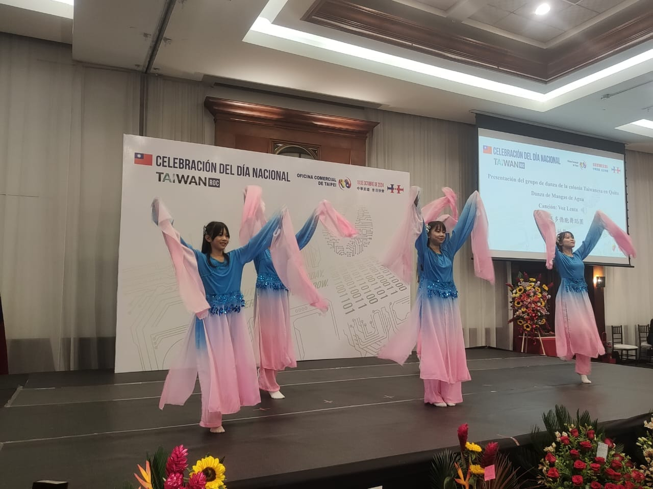 Los bailarines del Grupo de Danza de la Comunidad Taiwanesa en Quito y del Grupo de Danza Mali del Colegio "Alejandro Calazacón" de Santo Domingo de los Tsáchilas, bajo la enseñanza del Maestra Hsu, interpretaron respectivamente el baile de mangas de agua con la obra “Sonido Lento” del poeta de la dinastía Song, Li Qingzhao, y la danza del paraguas con la canción "Porcelana azul y blanca" de Jay Chou, el rey de Asia, interpretando plenamente el ambiente romántico de la larga historia de Taiwán en Asia.