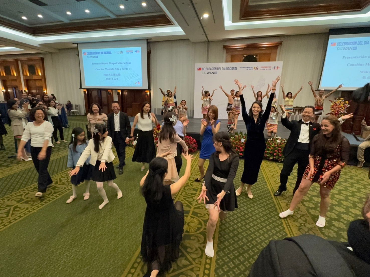 Al final, el espectáculo cerró con broche de oro con la danza tradicional " Montaña Alta y Verde" del la nacionalidad Tsou de Taiwán, interpretada por el Grupo de Danza Folclórica Mali y el Grupo de Danza de la Comunidad Taiwanesa en Quito. El ambiente festivo hizo que todos los invitados se unieran para cantar y bailar juntos. ¡Todo estuvo tan emocionante que la fiesta llegó a su clímax!