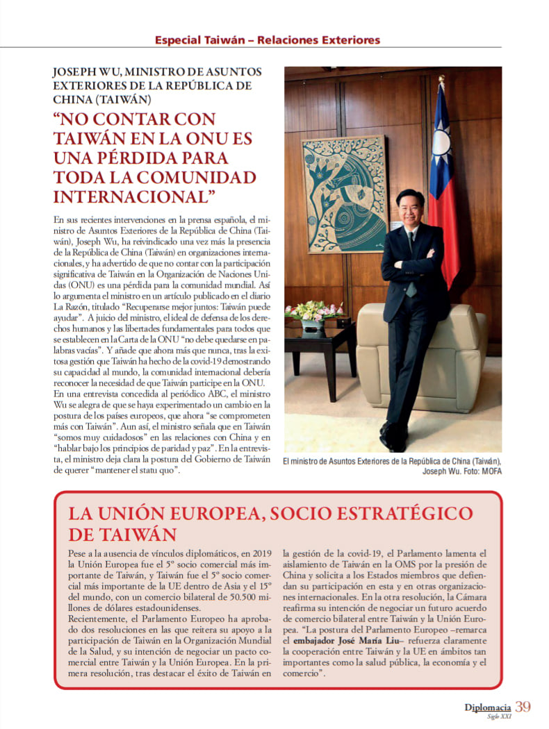 西班牙王國外交學院「外交(Diplomacia)雜誌」刊登「臺灣專題」報導 P.06