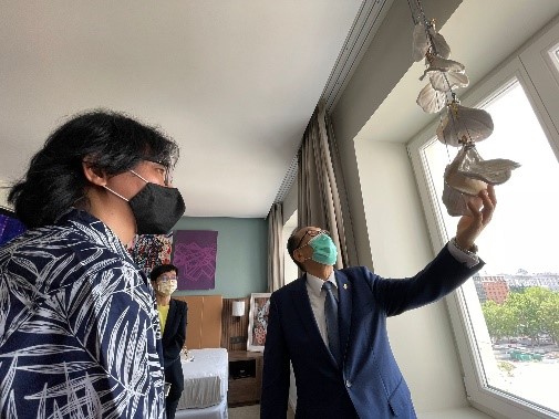 藝術家周明毅向劉大使德立介紹作品《迴聲與我》