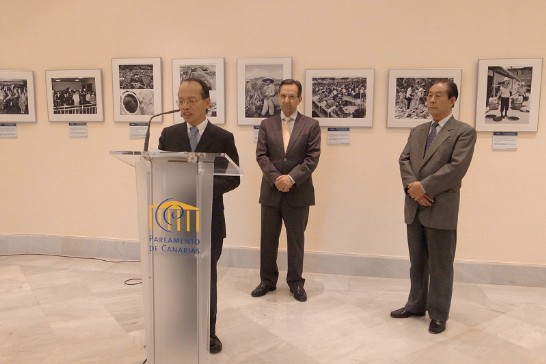 侯代表與加納利自治區議長Antonio Castro 、加納利台灣文化協會會長陸錦林共同主持開幕式。