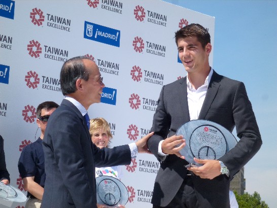 侯大使頒發2013年台灣精品最佳男運動員獎予西班牙奧運國腳兼皇家馬德里球員莫拉塔