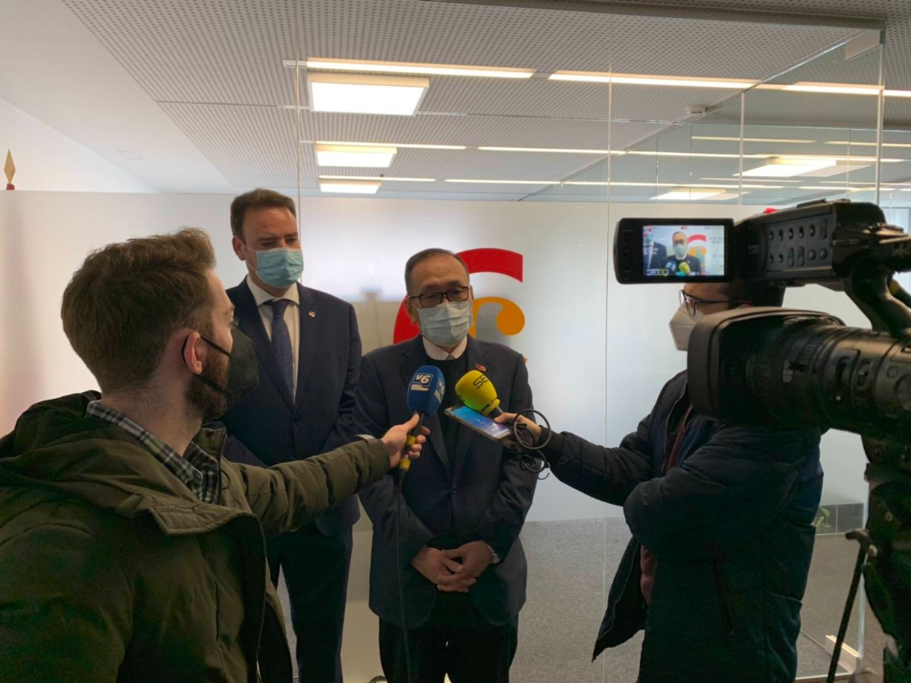 駐西班牙代表處劉大使德立應卡斯提亞-拉曼查(Castilla-La Mancha)自治區阿爾巴塞特(Albacete)國會眾議員Carmen Navarro及Albacete商會理事長Juan Martínez Moraga邀請於2022年3月11日赴Albacete商會演講,接受西國「西班牙廣播公司聯播網(SER)」及「Visión 6」電視臺聯訪,獲「Visión 6」電視臺視頻播出、「Albacete數位電子報(El Digital de Albacete)」、Albacete商會及「Albacete論壇電子報(La Tribuna de Albacete)」等刊登報導。 Albacete「Visión 6」電視臺於3月12日於電視台播出並於Youtube(https://www.youtube.com/watch?v=YRf4ieugF6A)頻道分享,報導內容略以,2021年Albacete地區出口至臺灣約60萬歐元,以農產品為主,包括葡萄酒、橄欖油、大蒜及洋蔥等。劉大使會晤Albacete商會理事長Juan Martínez Moraga並向企業界演講,提供Albacete地區企業新商機及以臺灣為平臺加強拓展雙邊貿易。M理事長表示,儘管Albacete地區若干廠商已與臺灣進行貿易,惟特別感謝劉大使來訪,使更多廠商瞭解臺灣,以利進一步增加出口商機。劉大使強調,此次訪問主要在建立臺灣與Albacete交流管道,協助推動Albacete地區農產品輸銷,尋求平衡雙邊貿易。 Albacete數位電子報以「劉大使訪問Albacete 強化雙邊貿易」為題說明,2021年臺西雙邊貿易約25億美元,臺灣享有貿易順差逾7億美元,劉大使此次商訪主要在建立雙邊交流管道,協助推動Albacete地區農產品輸銷,尋求平衡雙邊貿易。報導另稱,劉大使於參訪 Ultracngelados Campo Verde冷凍蔬菜工廠後,對該公司產品品管嚴格,品質優良印象深刻,表示將竭力對Albacete業者提供協助。M理事長則表示,劉大使訪問Albacete推廣雙邊貿易對業者提供莫大助益,並強調臺灣為業者重視之市場,亦為該地區葡萄酒、橄欖油及大蒜等之重要出口目的地,Albacete商會將共同協助業者拓展出口。 Albacete商會以「劉大使協助Albacete企業尋找拓展臺灣新商機」為題進行報導,Albacete論壇電子報則引用Albacete商會之報導內容於該報刊登,內容略以,劉大使拜會Albacete商會M理事長,並對Albacete業者演講,鼓勵Albacete業者積極開拓臺灣市場,駐西代表處將竭力提供協助。M理事長強調,劉大使之演講促進Albacete企業瞭解臺灣現況,以利加強拓展商機。報導另稱,2021年Albacete對臺出口農產食品約50萬3,358歐元,主要為葡萄酒及大蒜,另對臺出口機器設備產品為44萬6,011歐元。Albacete自臺灣進口以機器設備為主,金額為10萬4,996歐元。M理事長指出,商會將續鼓勵出口商拓展海外市場,包括臺灣市場,相信對業者克服疫情及全球面臨之經濟危機將大有助益。