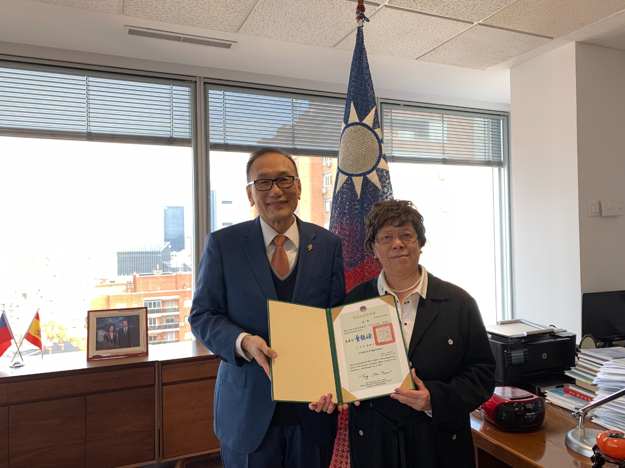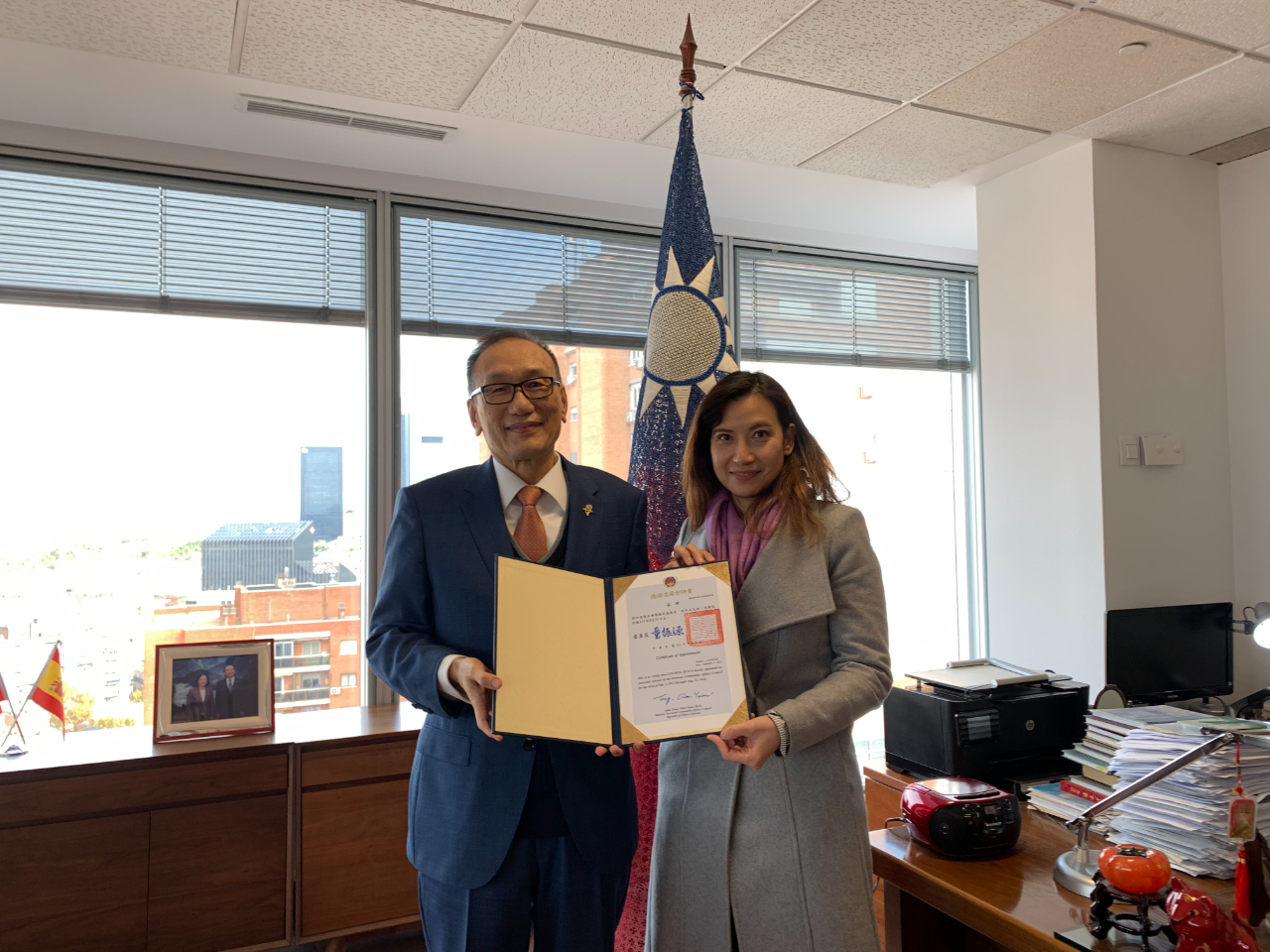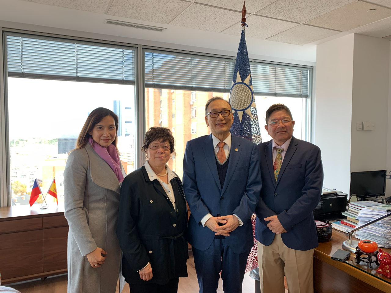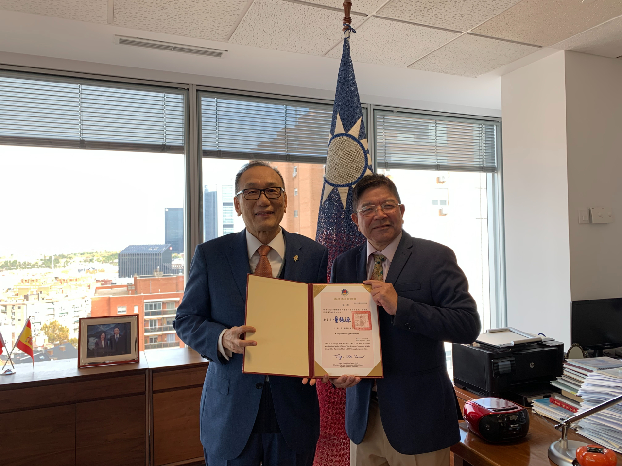 駐西班牙代表處劉大使德立於本(11)月22日代表僑務委員會轉頒轄區僑務諮詢委員聘書予黎萬棠先生、僑務顧問聘書予曾細珍女士、僑務促進委員聘書予郭怜葳女士,以及寄頒僑務諮詢委員聘書予彭威璋先生(目前在臺)及曾鴻祥先生(居住600公里外之巴塞隆納,避免舟車往返增加染疫風險),恭賀渠等續(新)任僑務榮譽職,亦讚揚渠等長期以來對僑社之貢獻及對政府之支持,並期勉一本初衷繼續為西國僑社服務。