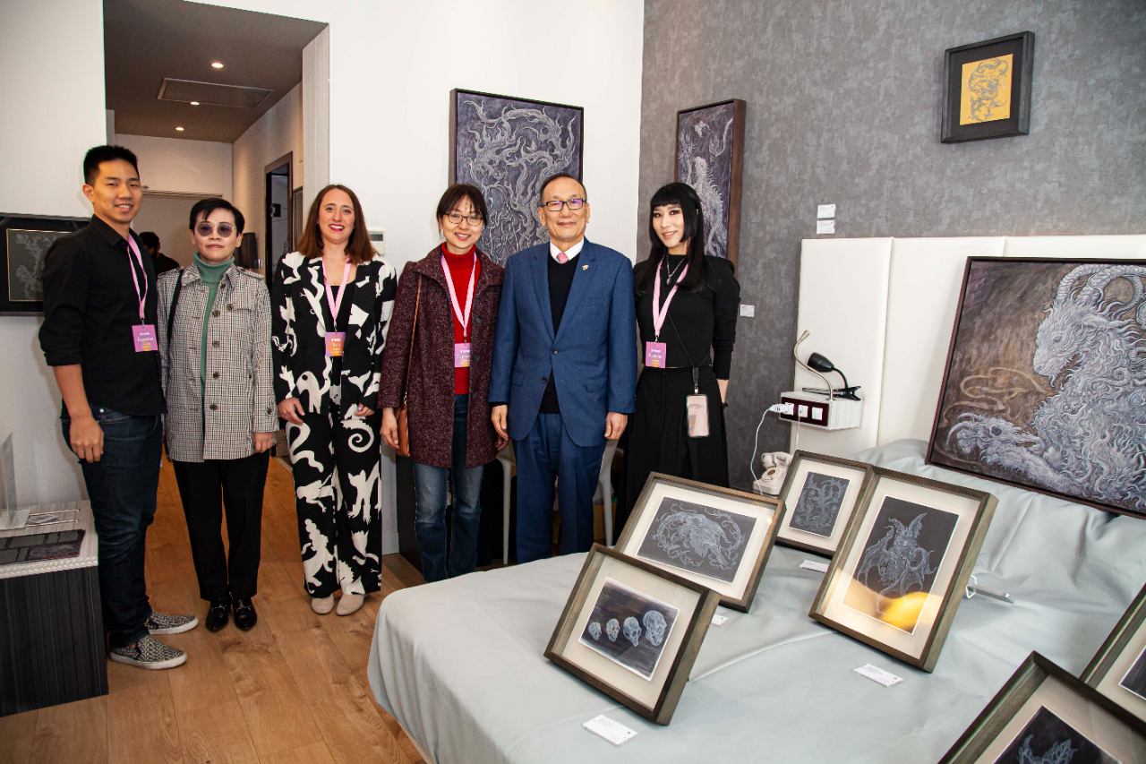 劉大使德立參訪我國「馬德里臺灣藝術週」-「采泥藝術」於 Hybrid當代藝術博覽會(Hybrid Art Fair)舉辦之藝術家陳思穎展覽