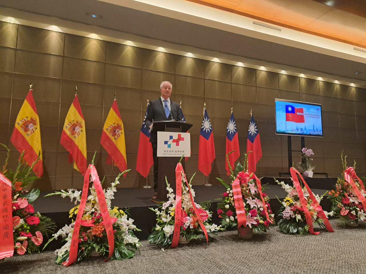 駐西班牙代表處於10月4日中午在西國首都馬德里市歐洲之星飯店(Eurostars Tower Hotel)舉辦慶祝中華民國112年國慶酒會。西國國會參、眾議員、行政與地方首長、駐西外交團、國際組織主管、媒體、學術、智庫、經貿工商、藝文人士及旅西僑胞等各界友人應邀到場共同慶祝。