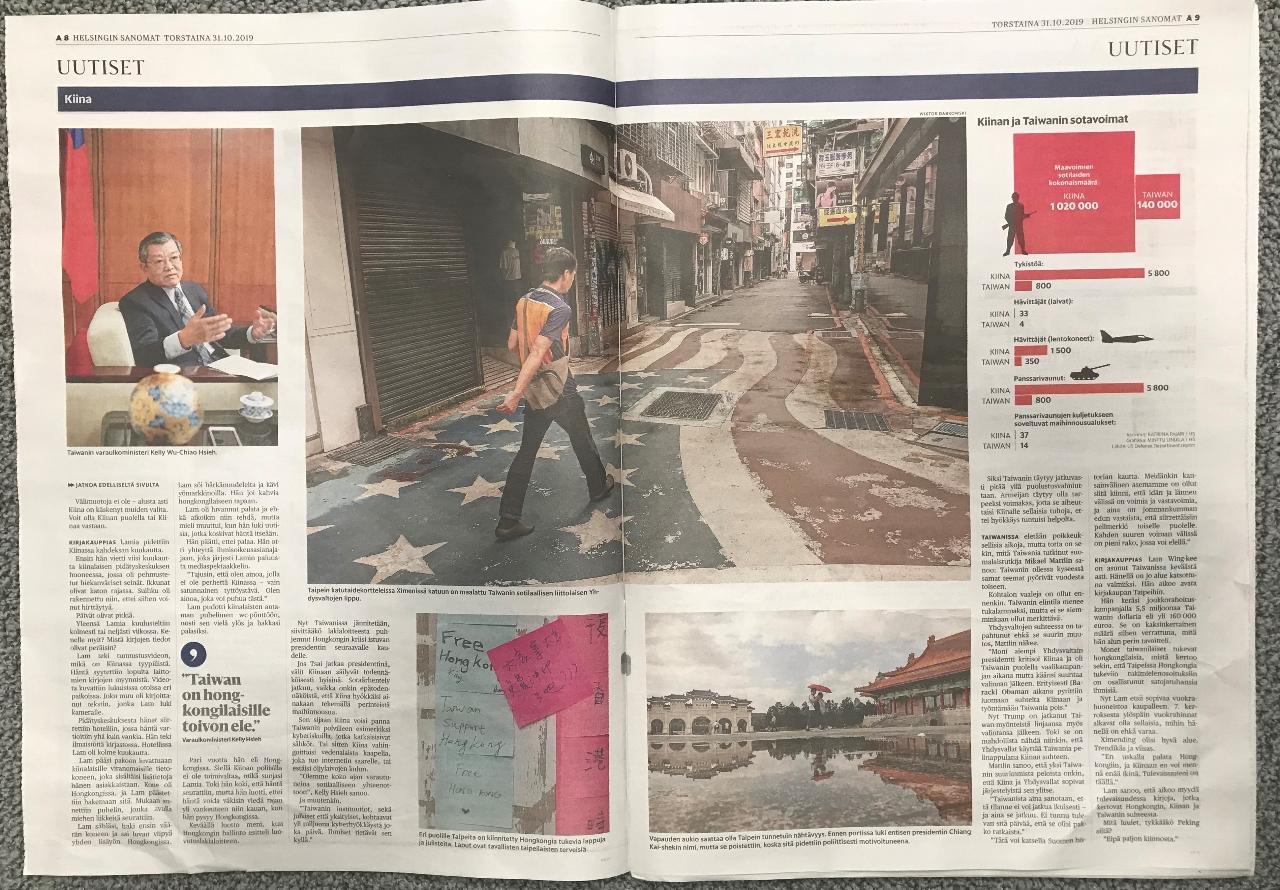 我外交部政務次長謝武樵於10月31日出刊的「赫爾辛基日報」(Helsingin Sanomat) 專文中表示,臺灣是香港學習的典範與希望之所寄,在臺灣成熟民主體制下,人民享有自由並且受到尊重。