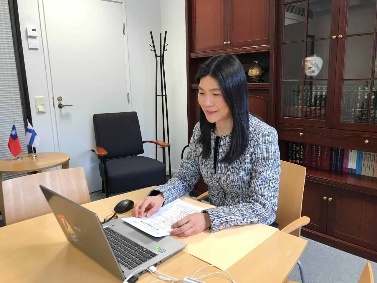 張秀禎代表很榮幸應邀於4月15日線上出席由中華民國國際經濟合作協會(CIECA)與芬蘭國家商務促進局(Business Finland)共同舉辦的第8屆台芬經濟合作會議,雙方聚焦於智慧醫療及資安產業商機。本處樂見台芬持續深化雙邊經貿合作交流。