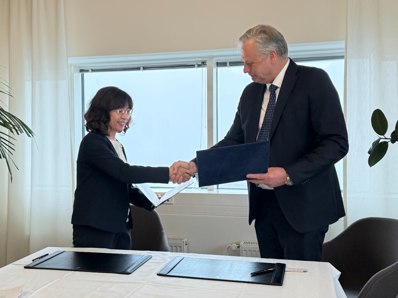 台灣民航局長何淑萍、芬蘭民航總長Jari Pöntinen於芬蘭首都赫爾辛基簽署台芬航空服務協議。
