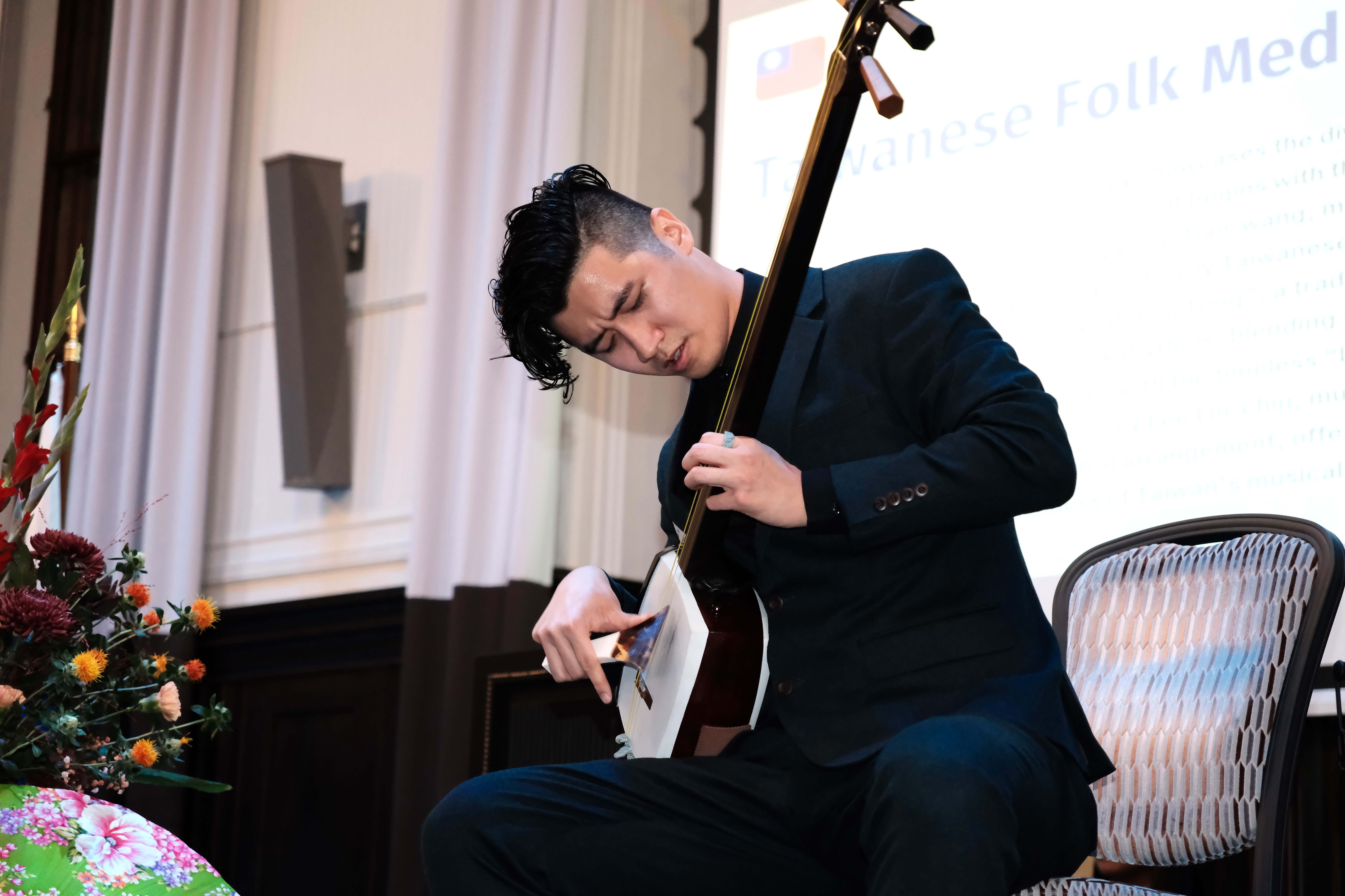就讀芬蘭西貝流士音樂學院的台灣音樂家倪瑞興在國慶酒會中演奏