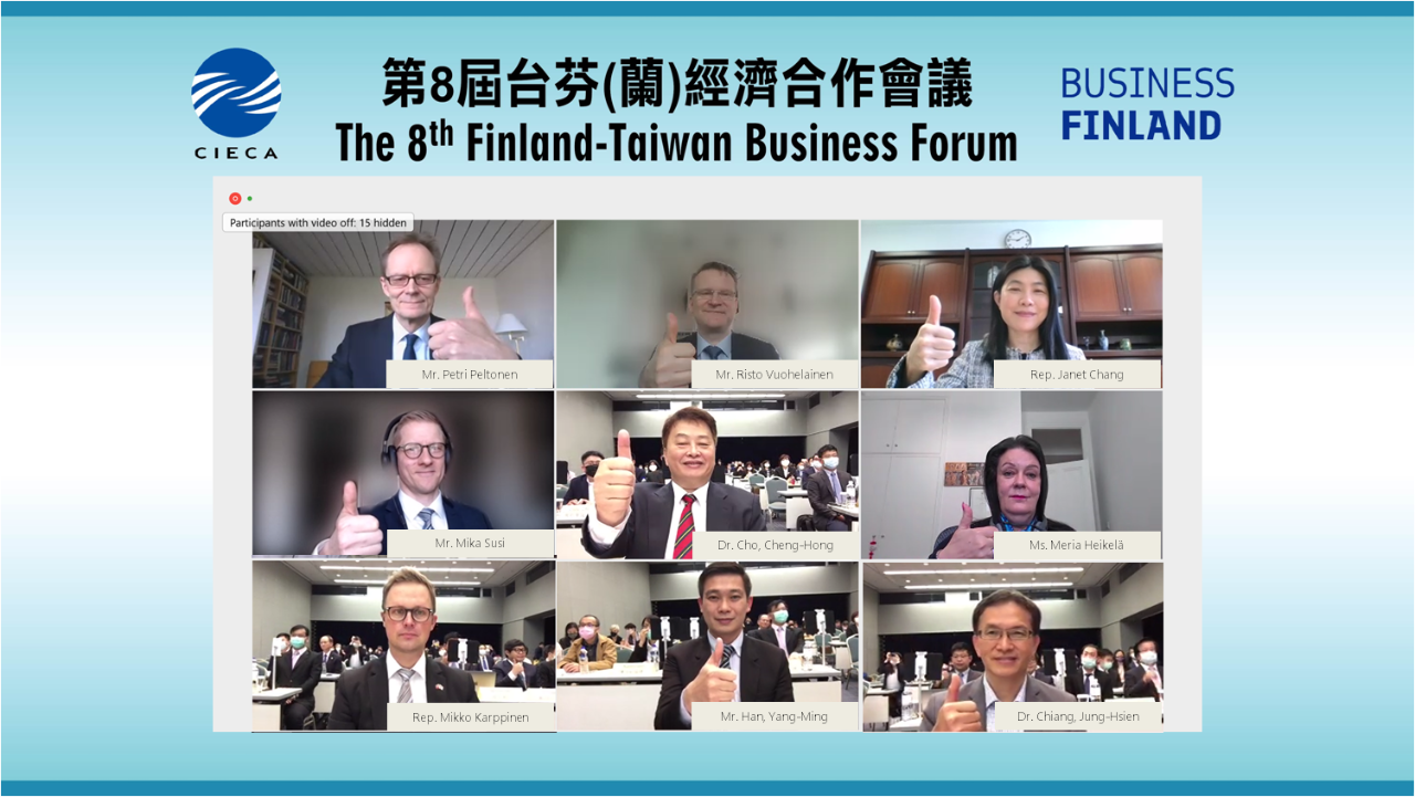 On 15 April 2021, Representative Chang had the privilege to virtually attend the 8th Finland-Taiwan Business Forum, co-hosted by Chinese International Economic Cooperation Association (CIECA) and Business Finland. The forum was attended by experts from Taiwan and Finland, and it focused on exploring business opportunities in the industries of smart healthcare and cybersecurity. We are pleased to see that both Taiwan and Finland are actively deepening the economic relations.