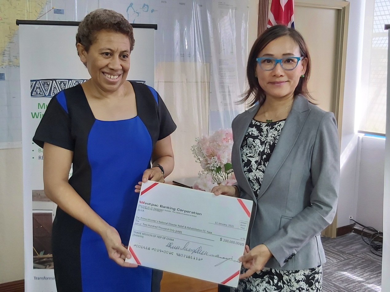 109年12月及110年1月兩強烈熱帶氣旋雅薩(Yasa)及安娜(Ana)相繼襲擊斐濟,第2大島瓦努阿島(Vanua Levu)及鄰近島嶼災情慘重。中華民國(臺灣)政府基於兩國友好情誼,秉持人飢己飢及人溺己溺精神,除對災情表達關懷外,並捐贈20萬美元人道援助款,協助救災。